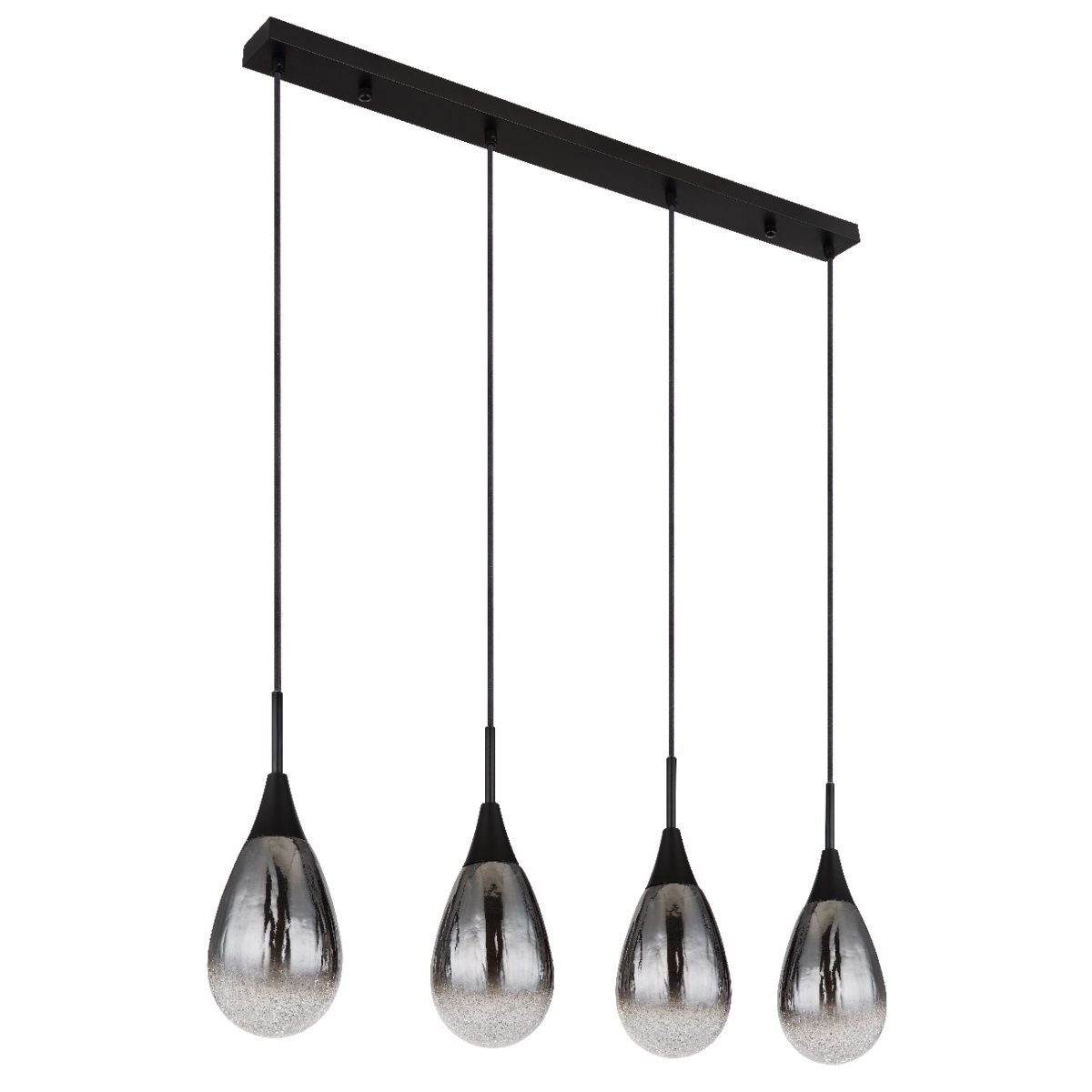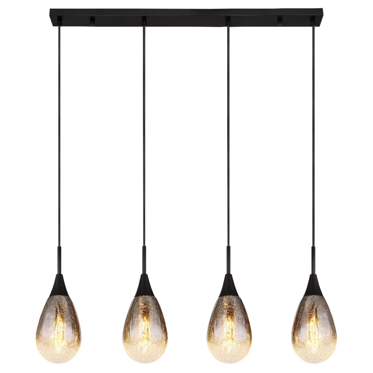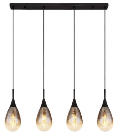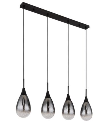 Ova prelepa visilica serije KRYS inspiriše sjajnim dizajnom. Četiri kabla dugačka 1,2 m nastavljaju se na plafonski nosač dužine 88 cm, od kojih svaki ima E14 grlo, koje je opremljeno oblikovanim staklenim abažurom u boji dima. E14 grla vam omogućavaju da sami odredite boju svetla i jačinu do maksimalnog izlaza od 9 vati. Zbog dugovečnosti i uštede energije preporučujemo LED sijalice.