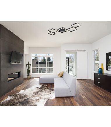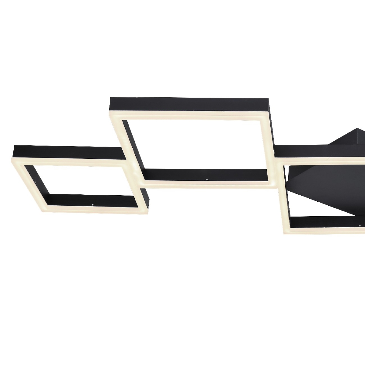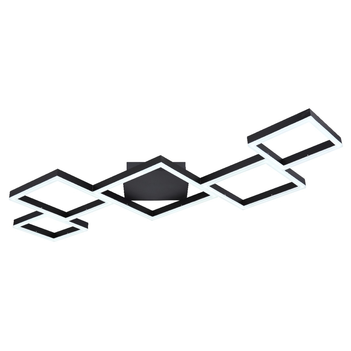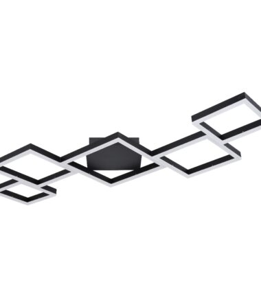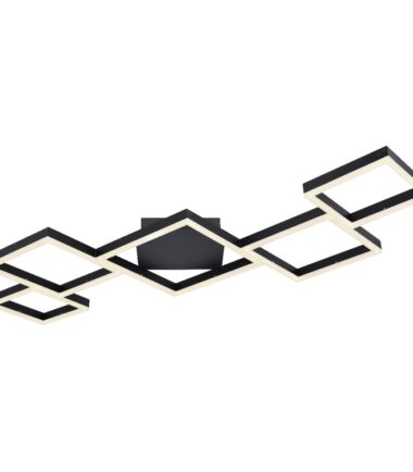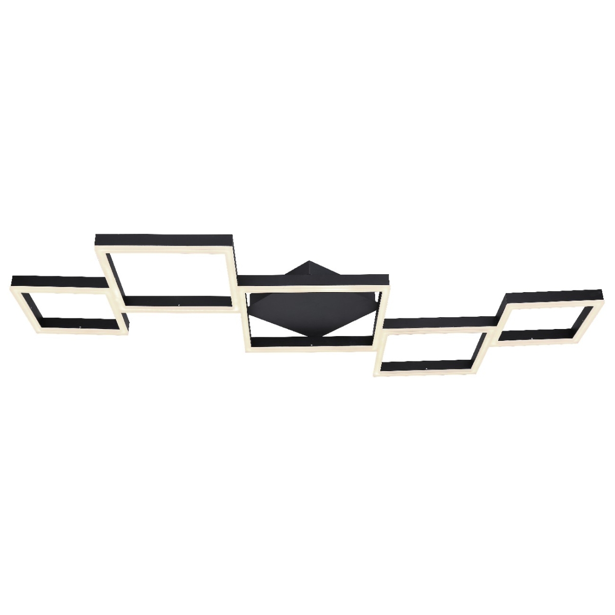 Ova moderna plafonska lampa iz serije KUIRO je elegantan dodatak vašem prostoru sa prelepim dizajnom napravljenim od crnog mat metala. Plafonska lampa dugačka 120 cm sastoji se od pet kvadratnih metalnih ramova okovanih zajedno, koji postaju manji ka spolja. Zbog opalnog akrila metalnih ramova, LED sijalice obezbeđuju 1800 lumena jake svetlosti. Pored toga, možete prigušiti plafonsko svetlo pomoću uključenog daljinskog upravljača i takođe podesiti boju svetla pojedinačno u nekoliko koraka između 2700 Kelvina (topla bela) i 6000 Kelvina (hladno bela). Sa ostalim artiklima serije Kurio možete upotpuniti celokupnu sliku vašeg enterijera.