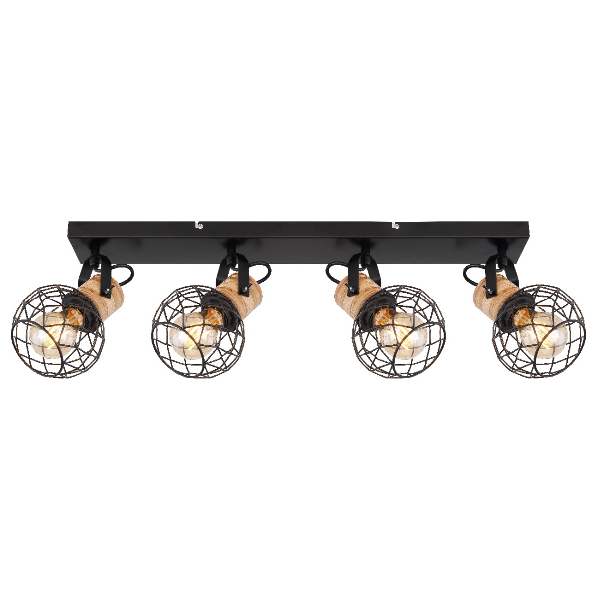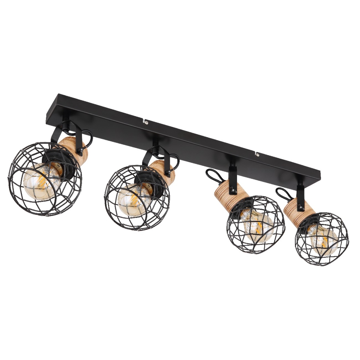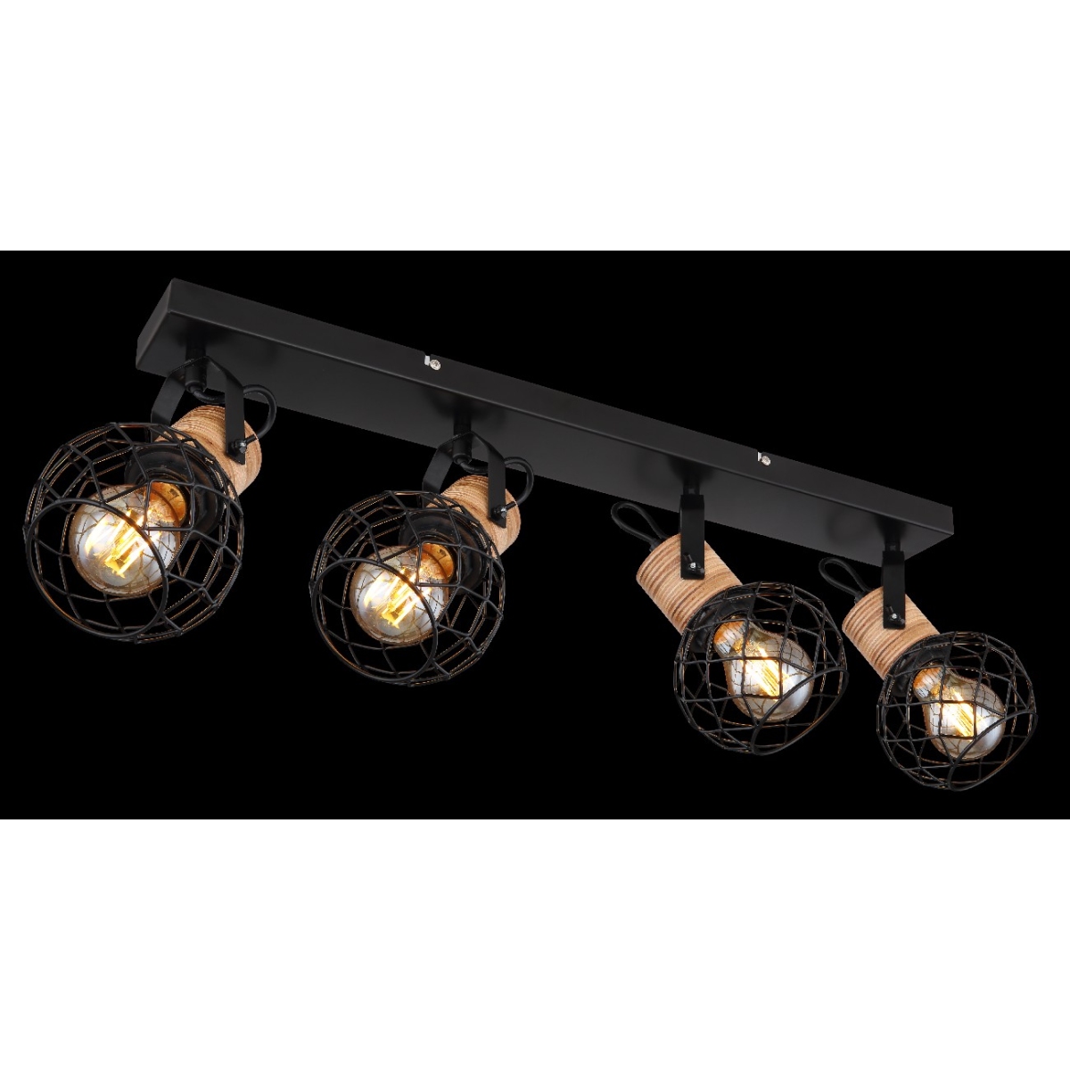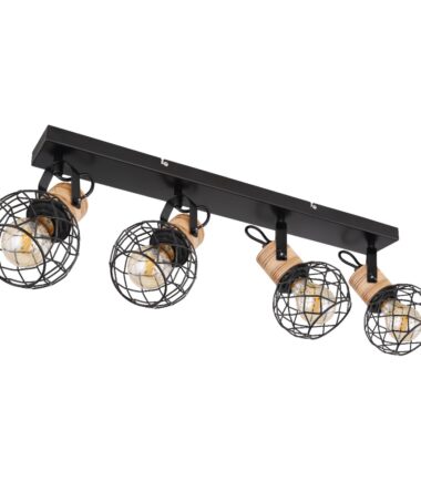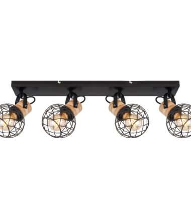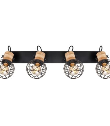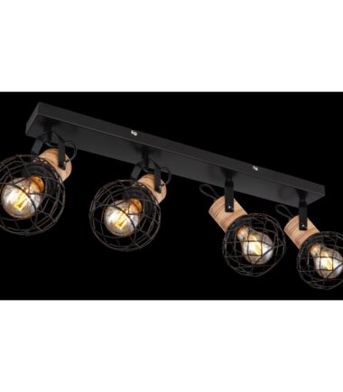 Ovaj spot iz serije LACKY (65x12cm) je elegantan dodatak vašem enterijeru. Sastoji se od četiri E27 grla uokvirena drvetom sa zakrivljenim metalnim mrežastim abažurima, koje možete opremiti odgovarajućim sijalicama po vašem izboru, omogućavajući vam da pojedinačno odredite boju svetla i jačinu. Sa ostalim modelima iste serije možete upotpuniti celokupnu sliku u svoja četiri zida.
