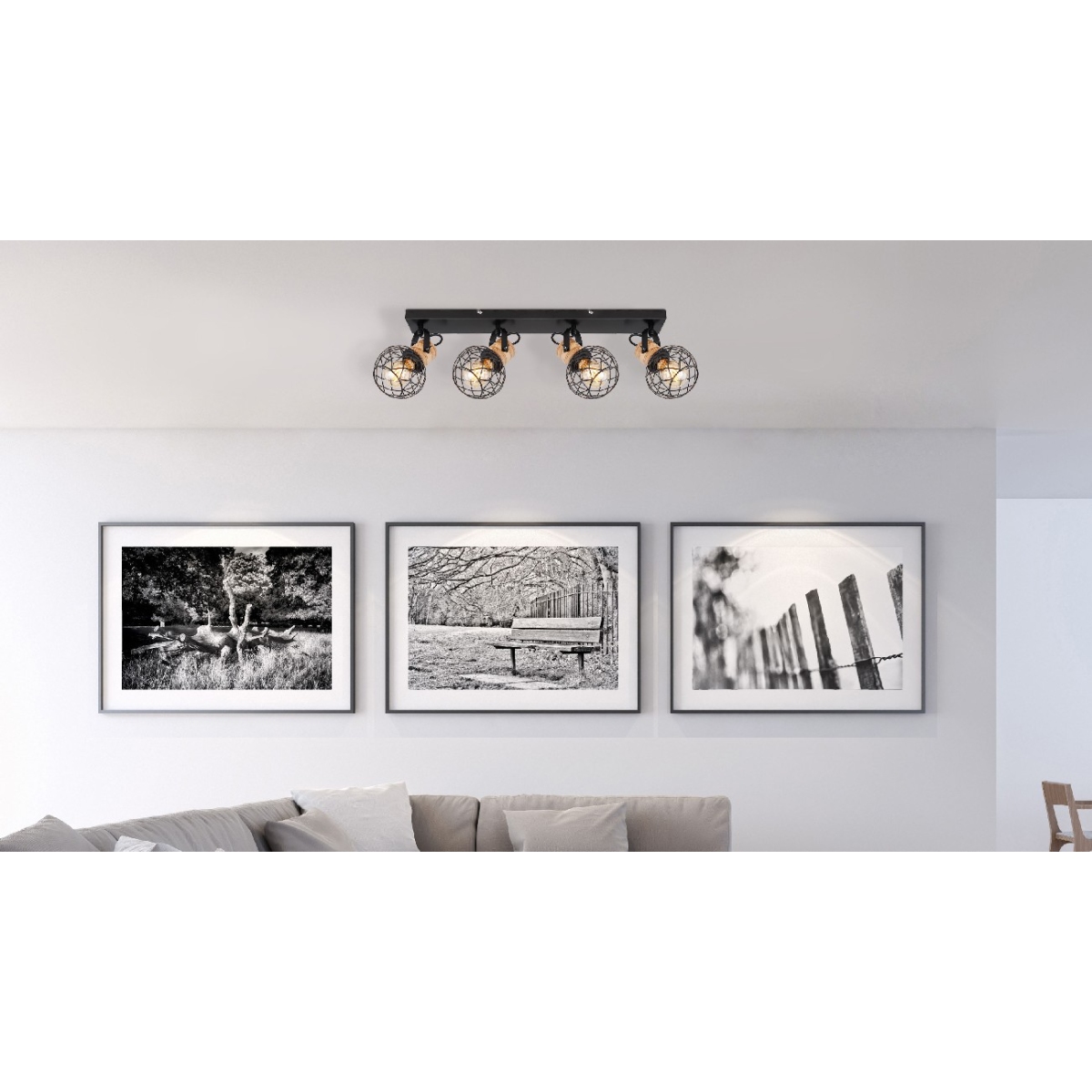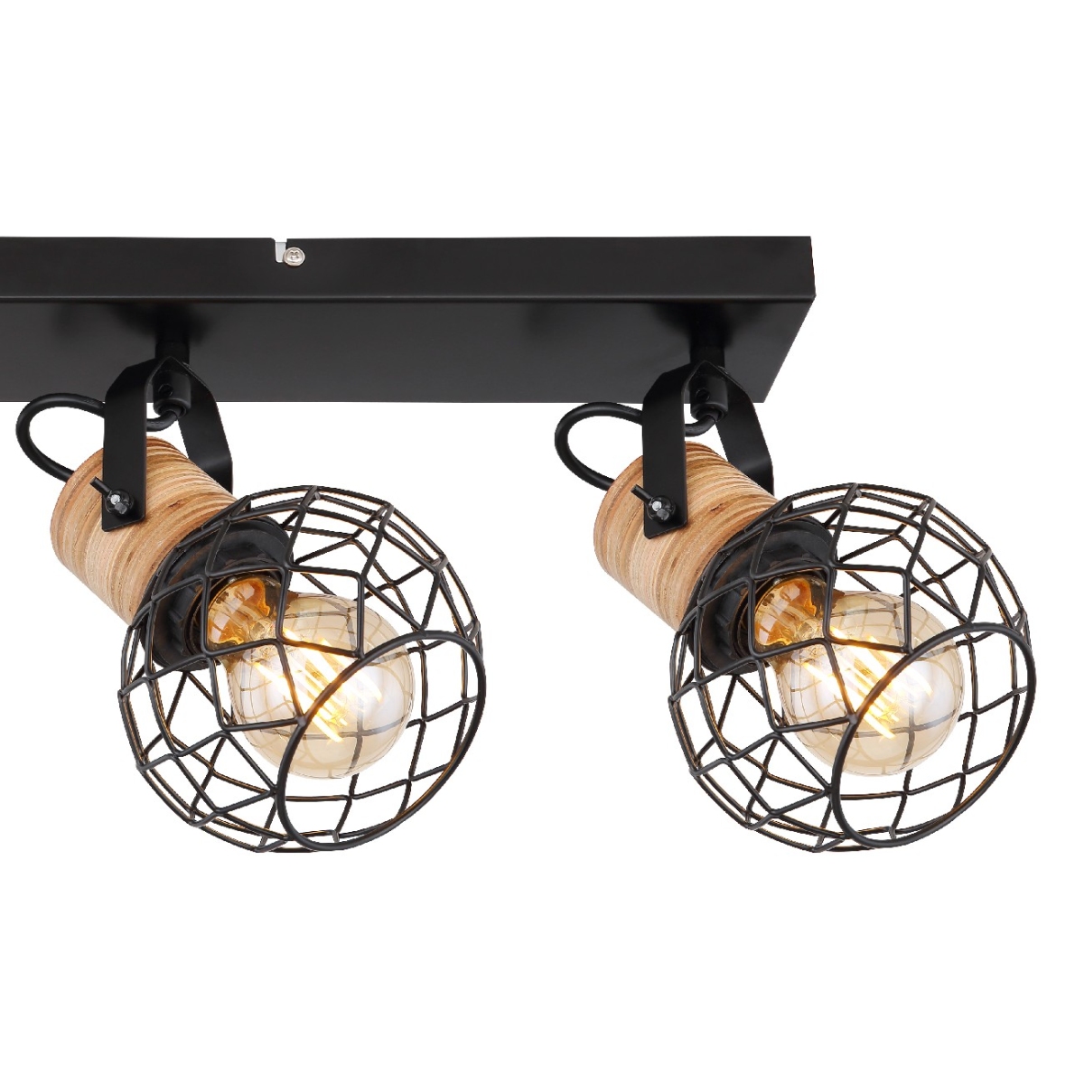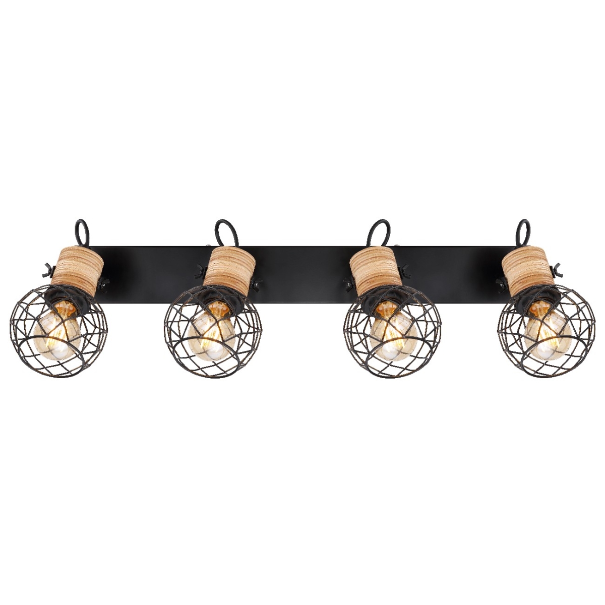 Ovaj spot iz serije LACKY (65x12cm) je elegantan dodatak vašem enterijeru. Sastoji se od četiri E27 grla uokvirena drvetom sa zakrivljenim metalnim mrežastim abažurima, koje možete opremiti odgovarajućim sijalicama po vašem izboru, omogućavajući vam da pojedinačno odredite boju svetla i jačinu. Sa ostalim modelima iste serije možete upotpuniti celokupnu sliku u svoja četiri zida.