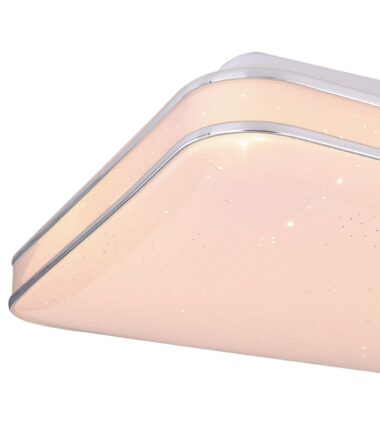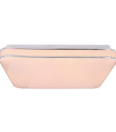 Ova plafonska lampa LASSY je jednostavan, klasično oblikovan model, koji je uglavnom napravljen od opalnog akrila sa svetlucavim dekorom. Uključeni LED od 24 vati ove kvadratne plafonske lampe (33,5 x 33,5cm) obezbeđuje 1800 lumena jaku svetlost sa toplom belom svetlom bojom od 3000K. Prelep odgovarajući hromirani prsten upotpunjava izgled ovog unutrašnjeg svetla.Lampa se može koristiti univerzalno u vašem životnom prostoru.