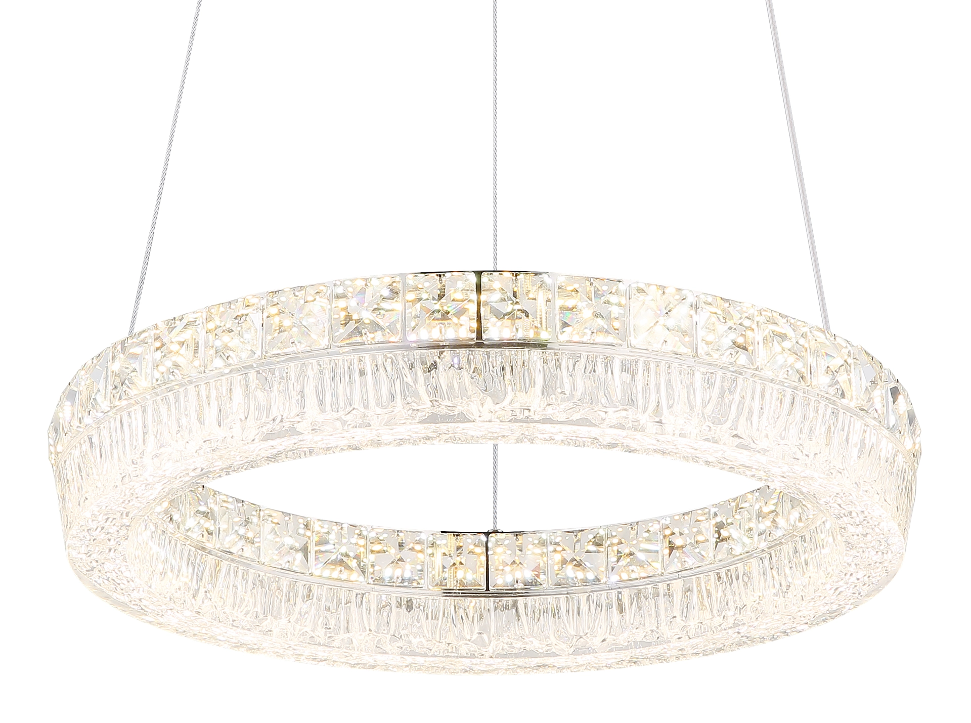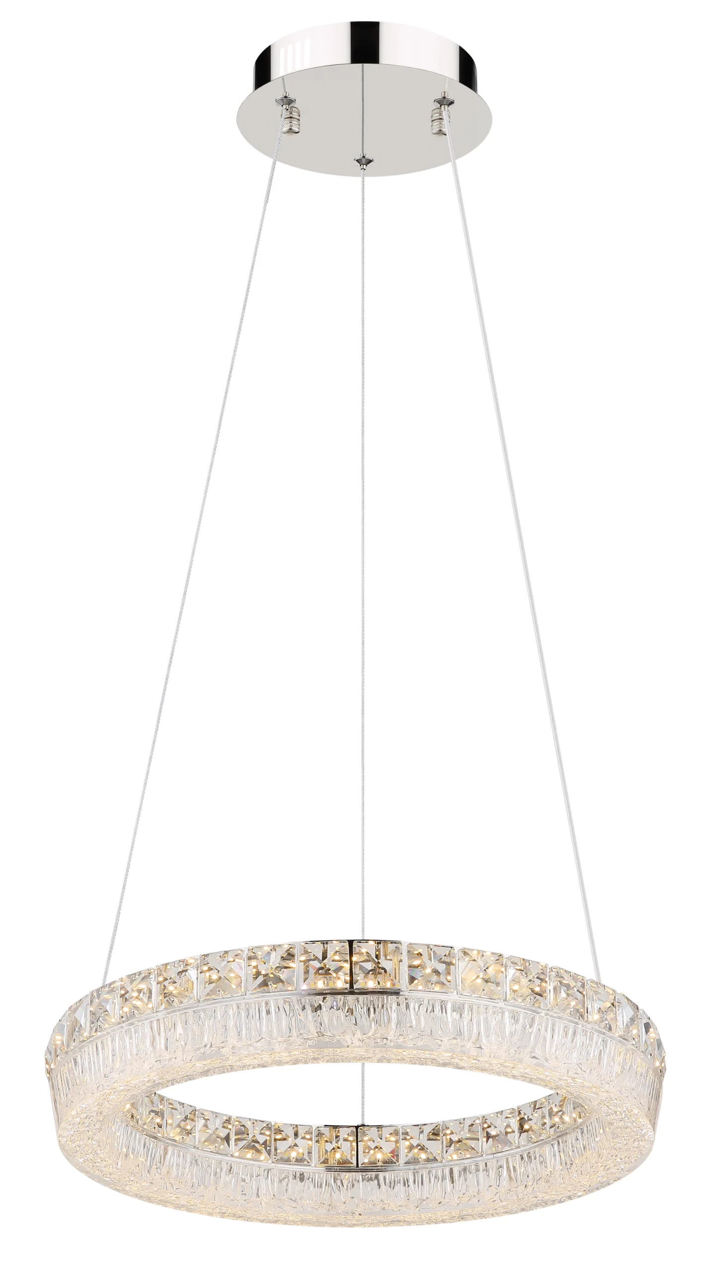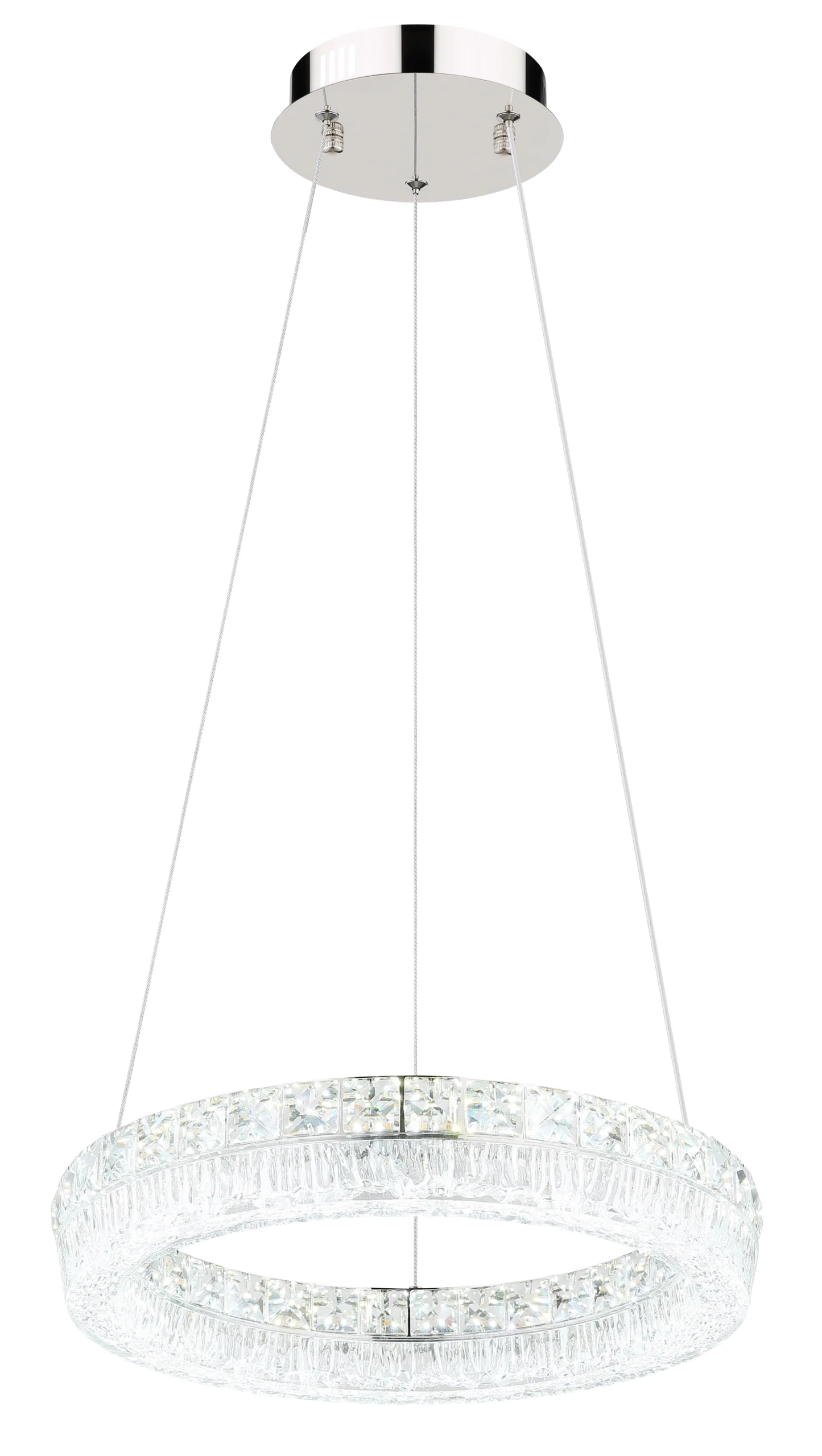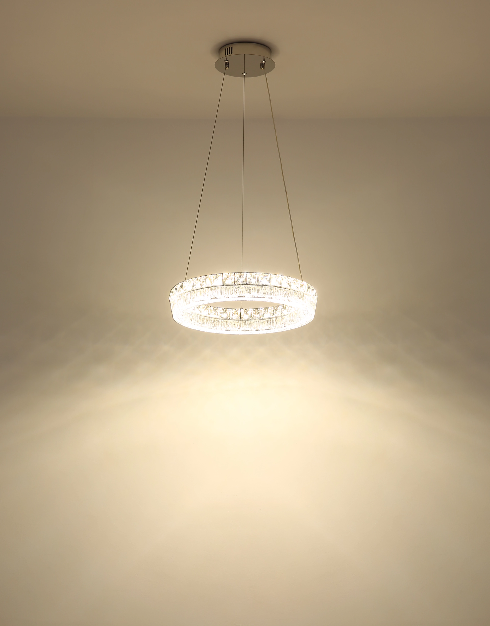 Viseća lampa LAUREL impresionira svojim modernim, okruglim dizajnom i visokokvalitetnim materijalima. Hromirani metalni okvir i prozirni akrilni abažur stvaraju stilski izgled, dok ugrađeni stakleni kristali dodaju fascinantne svetlosne akcente. Sa prečnikom od ø 400 mm i svetlosnim izlazom od 2500 lumena, LAUREL je idealna za dnevne i trpezarijske prostore. Zahvaljujući uključenom daljinskom upravljaču, lampom se lako upravlja: može se prigušiti, boja svetlosti se može kontinuirano podešavati između 2700 K (toplo bela) i 6000 K (dnevna bela) (CCT funkcija), a pojedinačne boje se mogu fiksirati. Integrisana funkcija memorije čuva poslednja podešavanja, a dodatno noćno svetlo pruža meko osvetljenje uveče. Sa uključenom izdržljivom LED tehnologijom, LAUREL nije samo stilski već i energetski efikasan — savršena kombinacija dizajna i udobnosti za vaš dom.