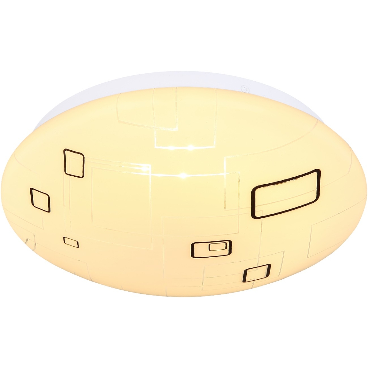 Ova okrugla plafonska lampa serije LAVA (ø 26 cm) ističe se svojim jednostavnim dizajnom napravljenim od opalne plastike. Ovo je obezbeđeno elegantnom šarom ukrštenih, crnih i srebrnih pravougaonika i pokriva uključene LED sijalice, koje obezbeđuju 820 lumena jake svetlosti prijatnom svetlom bojom od 3000 Kelvina (topla bela). Ostali artikli serije Lava vam omogućavaju da upotpunite celokupnu sliku u svom enterijeru i stvorite elegantan ambijent.