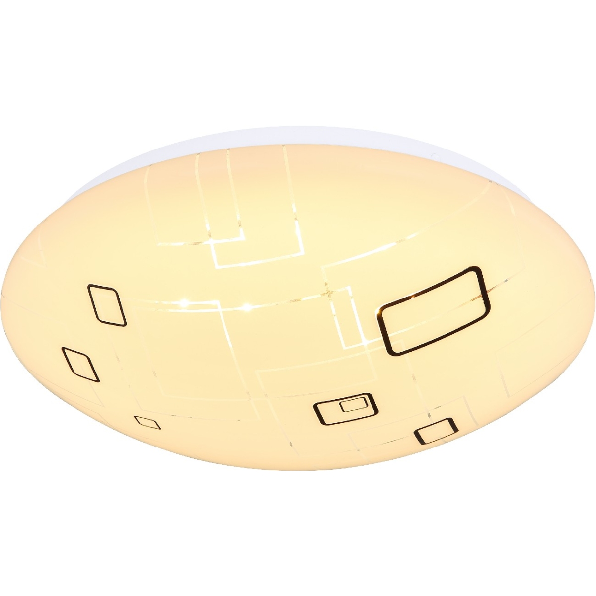 Ova okrugla plafonska lampa serije LAVA (ø 36 cm) ističe se svojim jednostavnim dizajnom napravljenim od opalne plastike. Ona je obezbeđena elegantnom šarom ukrštenih, crnih i srebrnih pravougaonika i pokriva uključene LED sijalice, koje obezbeđuju 1200 lumena jako svetlo prijatnom svetlom bojom od 3000 Kelvina (topla bela). Ostale stavke u seriji Lava vam omogućavaju da upotpunite celokupnu sliku u svom enterijeru i stvorite elegantan ambijent.