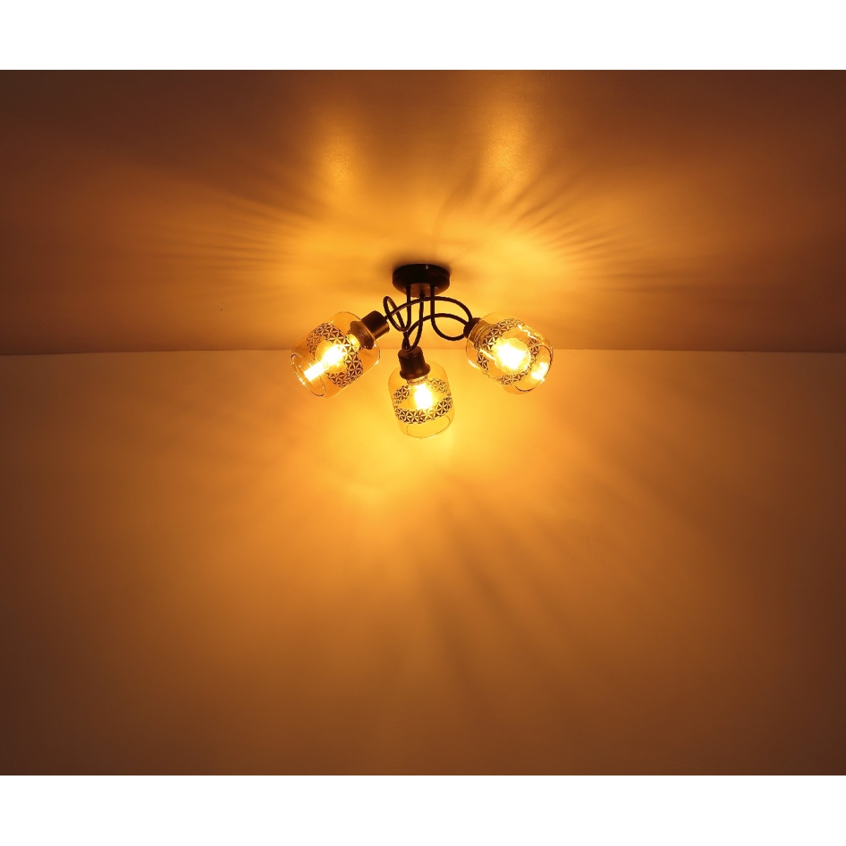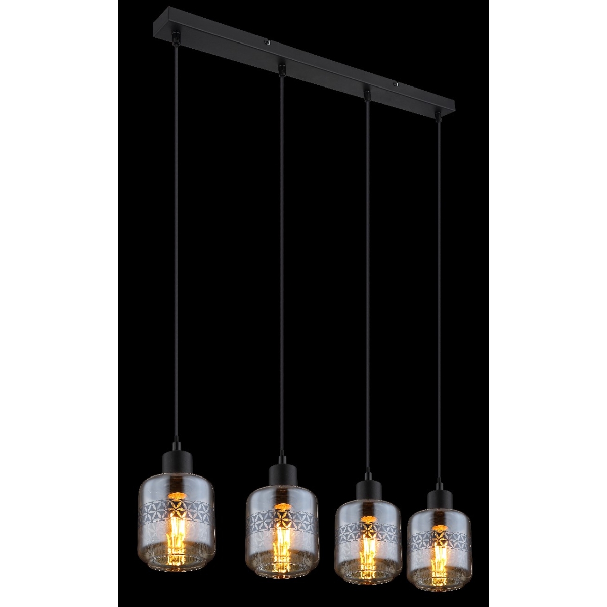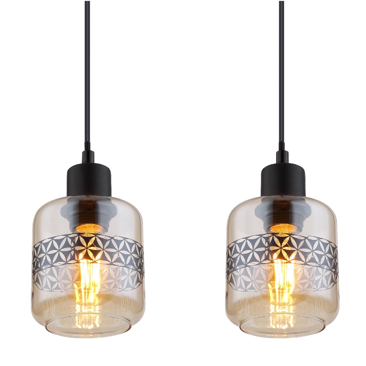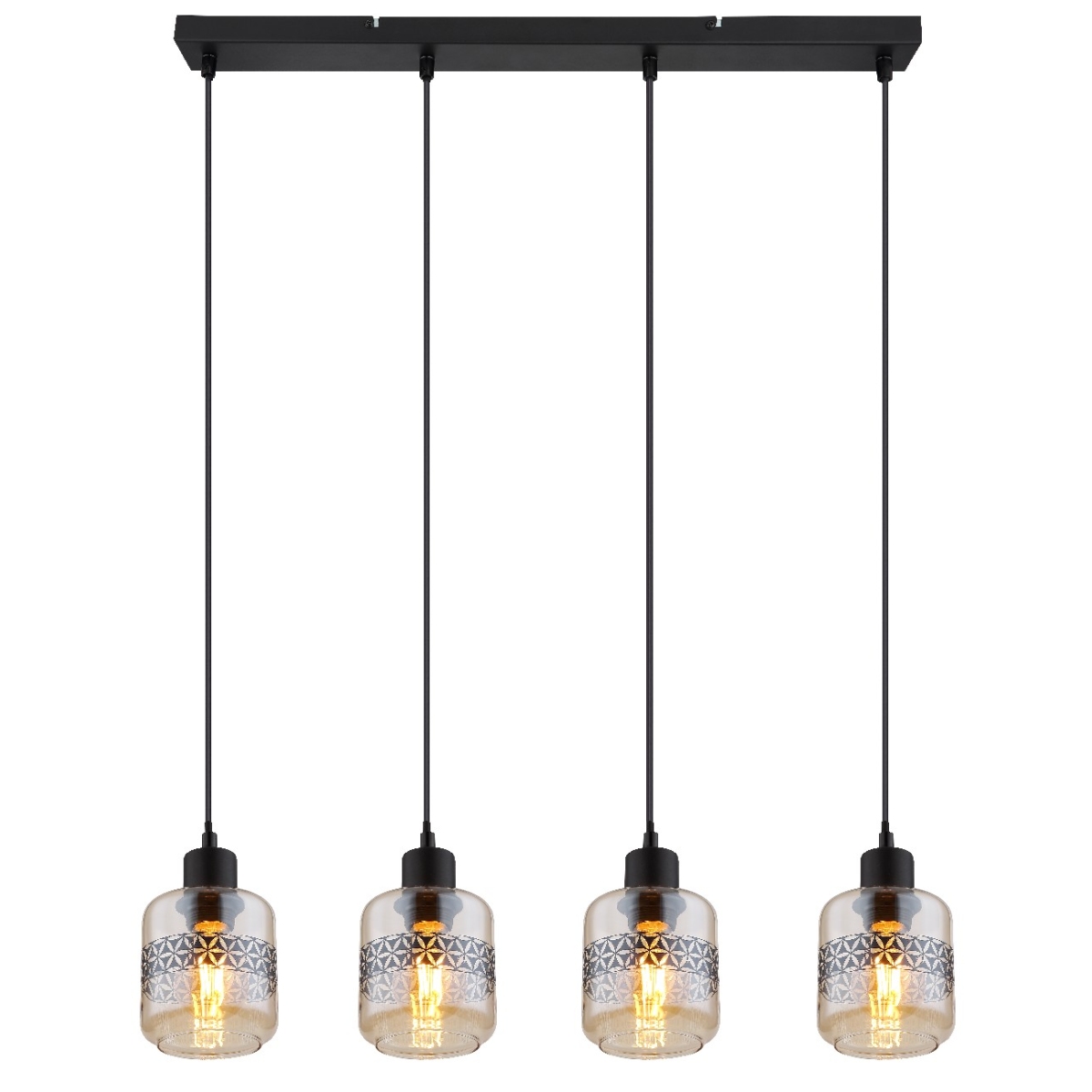 Ova visilica iz serije LAZARUS je divan dodatak vašem enterijeru. Visilica dugačaka 71 cm sastoji se od četiri stakla u boji ćilibara sa elegantnom šarom, koja vise sa plafona na crnim kablovima i mogu biti opremljena E27 LED sijalicama po vašem izboru. To vam pruža mogućnost da pojedinačno odredite boju svetlai jačinu. Pored toga, visina lampe se može podesiti i do 120 cm tokom instalacije. Sa ostalim modelima ove serije možete upotpuniti celokupnu sliku u enterijeru.