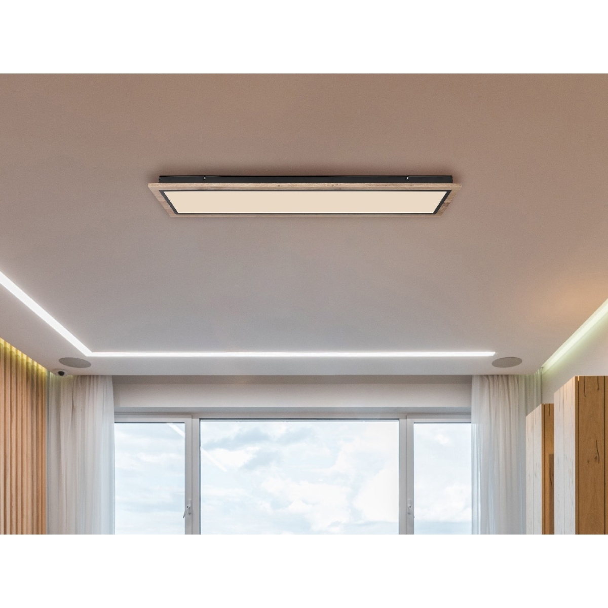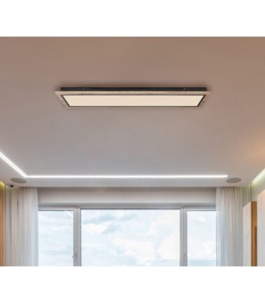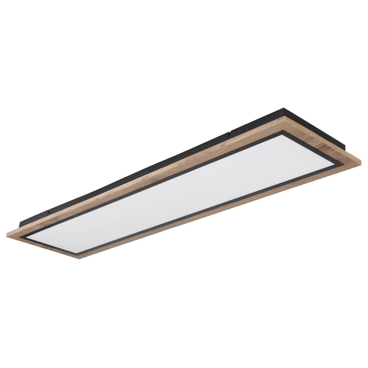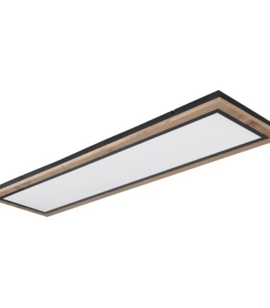Oblikovana plafonska lampa LEA serije inspiriše svojim jednostavnim dizajnom. Na crno mat plafonskoj osnovi montiran je oblikovani pravougaoni MDF ram nalik drvetu (120 x 30 cm) sa opalnim plastičnim poklopcem. Uključeni LED panel obezbeđuje toplu belu svetlost od 3000 kelvina i na taj način osigurava prijatnu atmosferu.