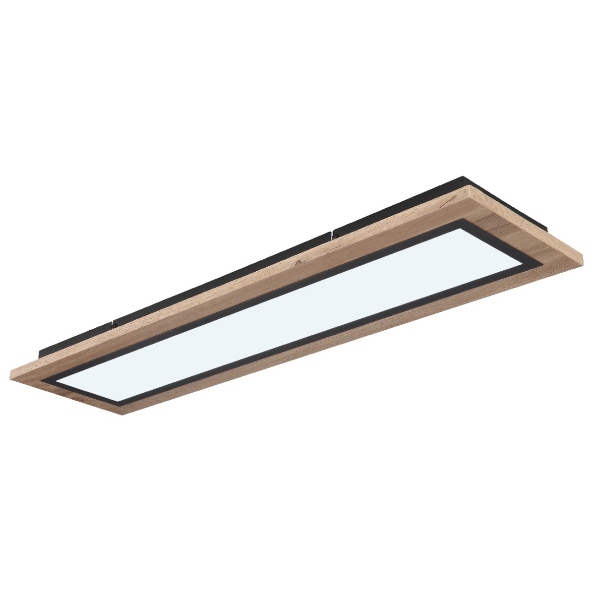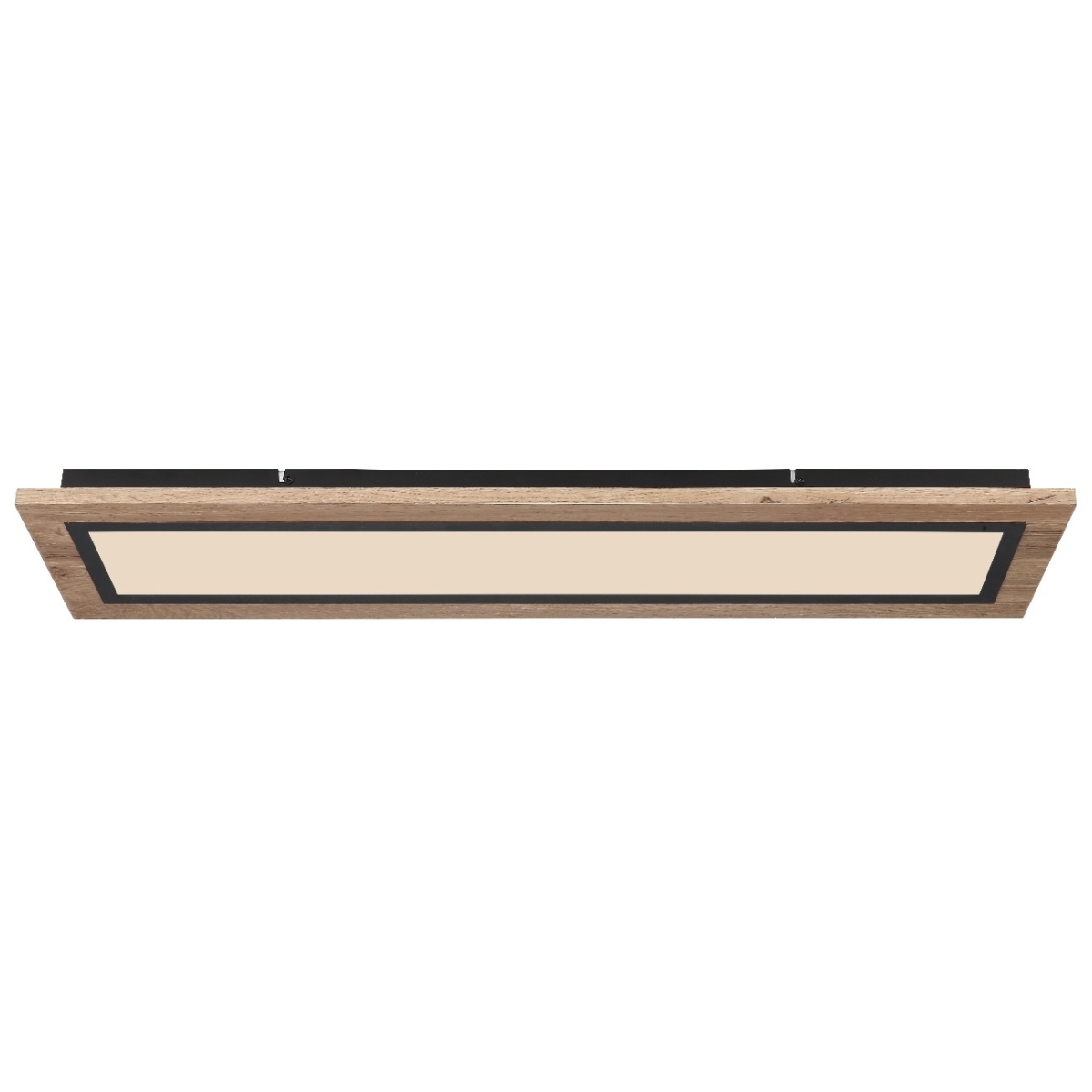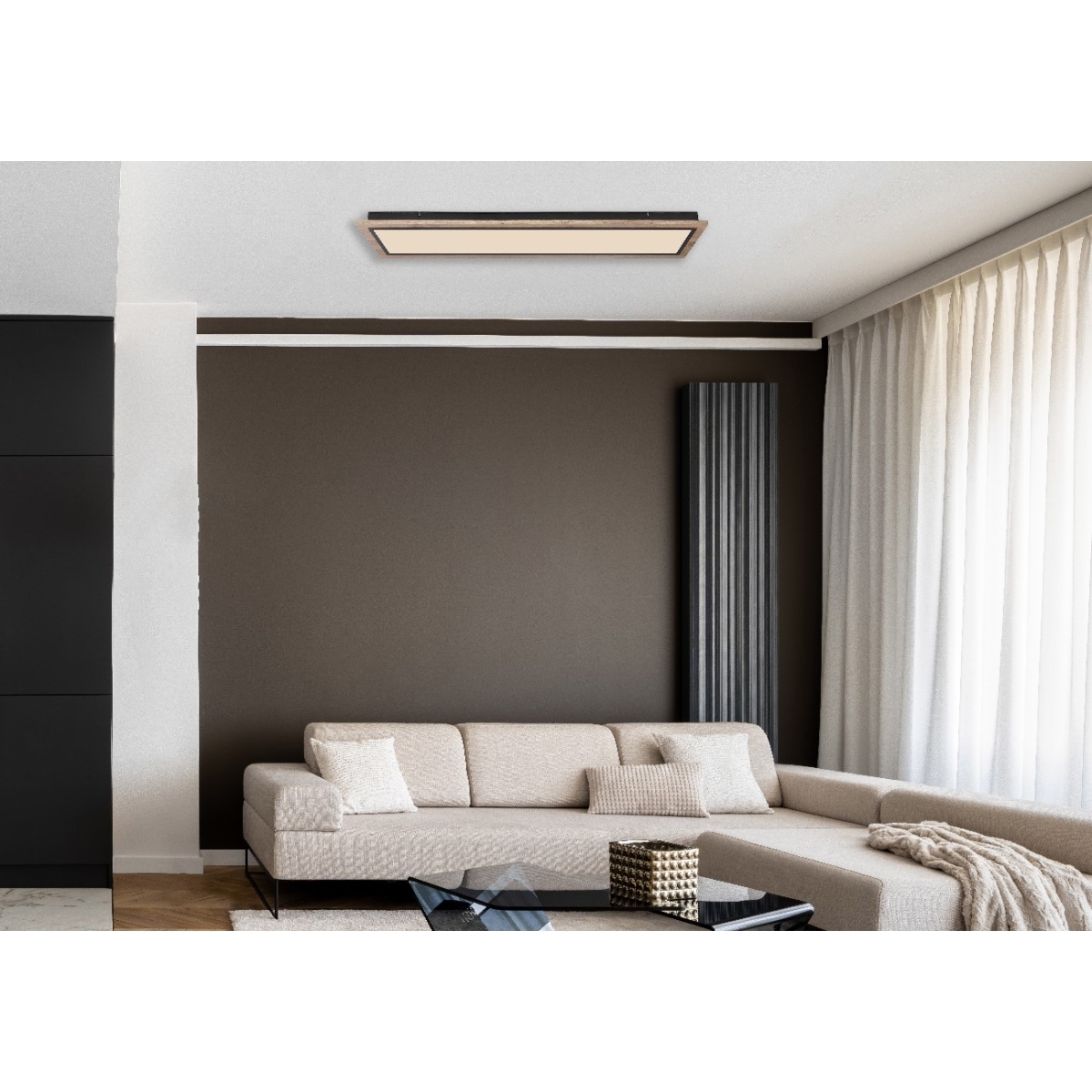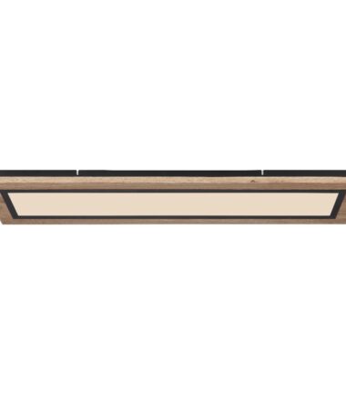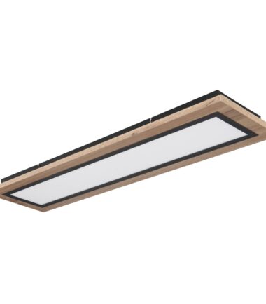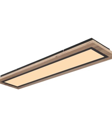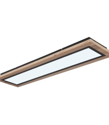 Oblikovana plafonska lampa LEA serije inspiriše svojim jednostavnim dizajnom. Na crno mat plafonskoj osnovi montiran je oblikovani pravougaoni MDF ram nalik drvetu (80 x 20 cm) sa opalnim plastičnim poklopcem. Uključeni LED panel obezbeđuje 2700 Kelvina topla bela do 6500 Kelvina hladno bela svetlost i može se zatamniti i fiksirati između ovih vrednosti. Pomoću uključenog daljinskog upravljača možete da upravljate funkcijom noćnog svetla za prijatnu atmosferu, a dodatno i funkcijom memorije da biste sačuvali poslednju korišćenu postavku nakon isključivanja lampe.