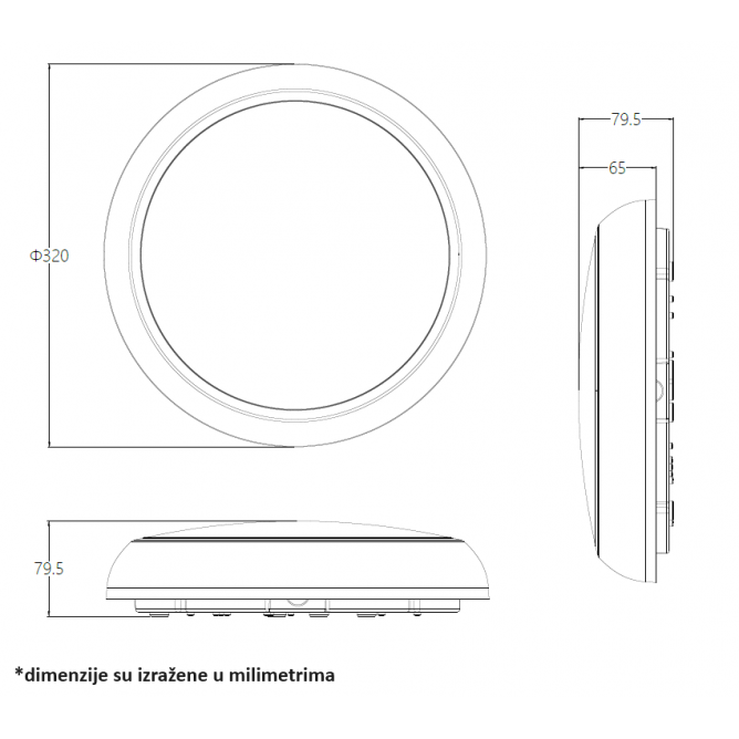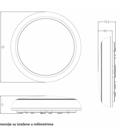 Led plafonjera u srebrno-sivoj boji, sa mogućnošću izbora snage između 16W, 20W i 24W. Takođe poseduje mogućnost izbora između 3 različite boje svetla (3000K, 4000K ili 6500K) putem prekidača. Zahvaljujući IP65 zaštiti plafonjera je pogodna za korišćenje spolja, jer se može se izložiti kiši i spoljnim vremenskim neprilikama. Takođe, poseduje IK10 zaštitu, što joj daje maksimalnu otpornost i na mehaničke udare.