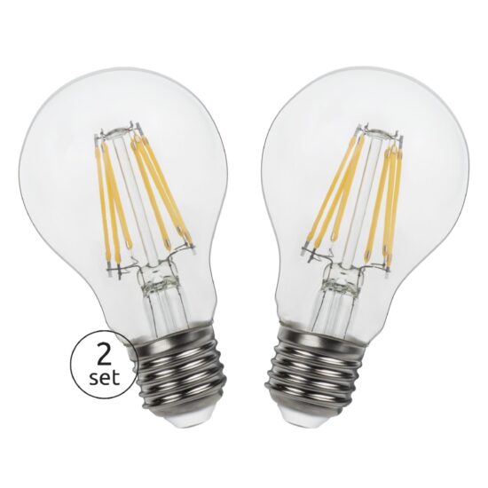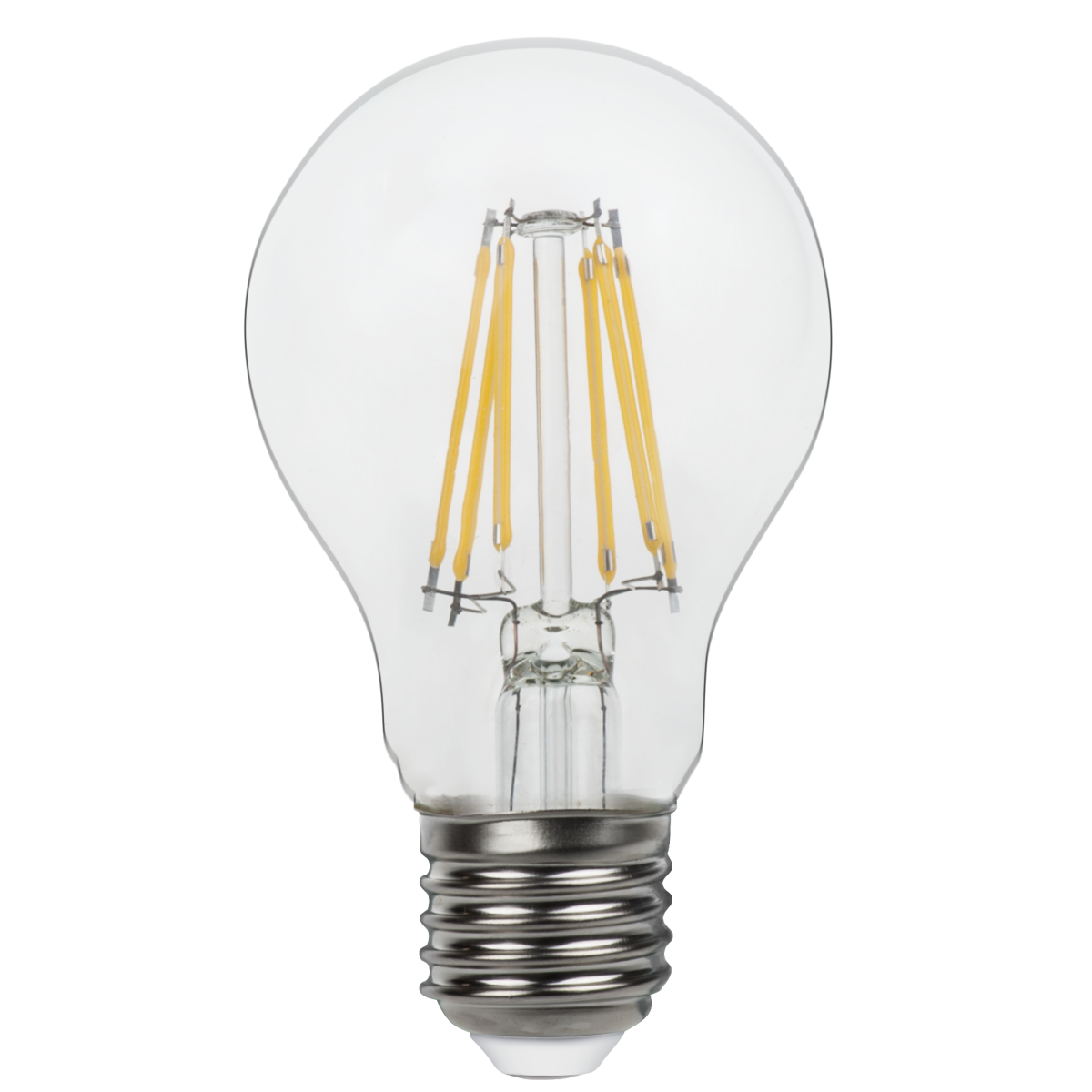 Performanse ovih E27 AGL filament 8 watt LED sijalica mogu se uporediti sa onim sijalicama od od 60 vati. Napravljene su od providnog stakla i obezbeđuju 806 lumena jako toplo belo svetlo od 2700K. Ove LED sijalice imaju vek trajanja od 25.000 sati i nisu zatamnjive.