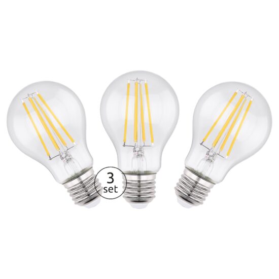 Otkrijte svestranost i energetsku efikasnost naših LED sijalica. Komplet od tri LED sijalice sa providnim staklom nudi vam visokokvalitetno rešenje za osvetljenje. Sa prečnikom od 60mm i visinom od 106mm, lako se uklapaju u standardne okvire. Svaka sijalica sadrži moćan 7W E27 LED koji isporučuje jačinu od 806lm. Temperatura tople boje od 2700K stvara udobnu atmosferu u svakoj prostoriji. Zamenite svoje tradicionalne sijalice ovim energetski efikasnim LED sijalicama i uštedite na troškovima energije u tom procesu. Uživajte u dugotrajnom i kvalitetnom osvetljenju uz naš SET LED sijalica.