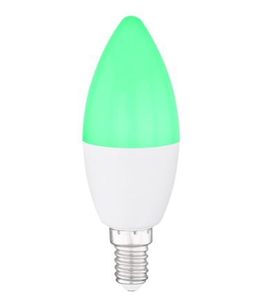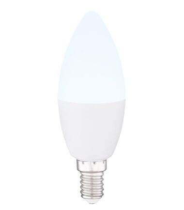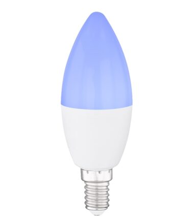Ova E14 sijalica u obliku sveće ima 4,5 vati. LED sijalica je zatamnljiva i takođe ima funkciju promene boje, koja se može kontrolisati putem priloženog daljinskog upravljača. Ovaj izvor svetlosti pruža svetlost do 300 lumena sa svetlom bojom toplog belog 3000 Kelvina do hladnih belih 6000 Kelvina. Ovom Smartlight sijalicom se može lako upravljati pomoću Tuya Smart aplikacije (Android TM/IOS). Kontrola glasa je laka sa Amazon Echo Tm i Google Home.