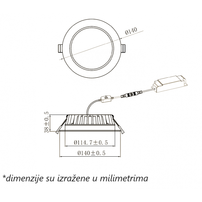 Radi neophodnog hladjenja svetiljku je potrebno ugraditi minimum 20 cm udaljenu od plafona.