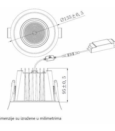 Radi neophodnog hladjenja svetiljku je potrebno ugraditi minimum 20 cm udaljenu od plafona.
