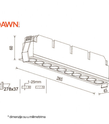 Ugradna LED svetiljka bele boje. Poseduje deset spot svetla koja emituju toplo belu svetlost ukupne snage 24w.