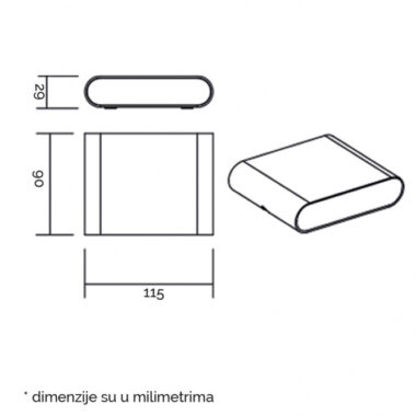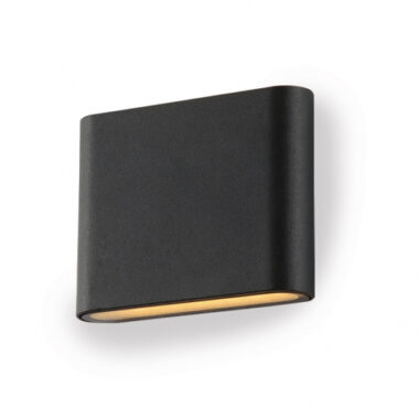 Zidna LED svetiljka u aluminijumskom kućištu IP 54 zaštite, u antracit boji, snage 6.5W. Emituje svetlo toplo bele (žute) boje. Zahvaljujući visokoj IP zaštiti od spoljašnih uslova, namenjena je za ugradnju na spoljne zidove objekata. Sa ovom lampom modernog dizajna i oblika, ulepšaćete i osvetliti prilaze Vašoj kući ili poslovnom objektu.