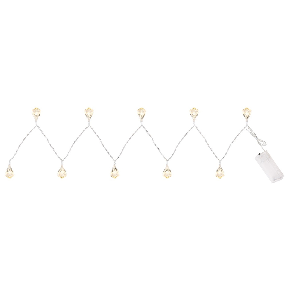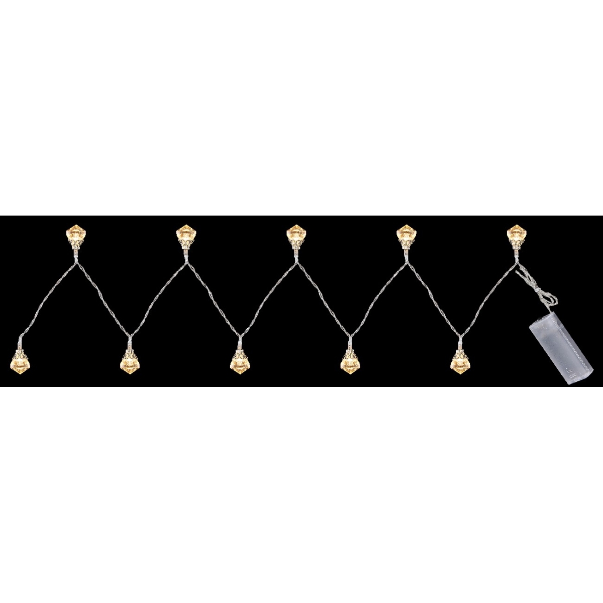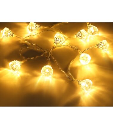 Prelepi niz svetla sa oblikom LED svetlosnih elemenata u obliku dijamanta. Topli beli sjajni dijamanti su postavljeni u intervalima od oko 10cm (linija snabdevanja 30cm).