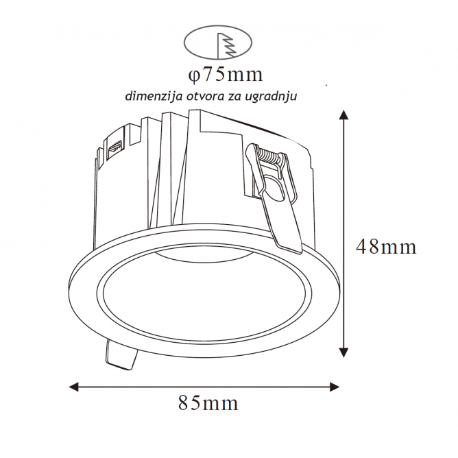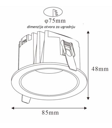 Dimenzije otvora za ugradnju Ø 75 mm