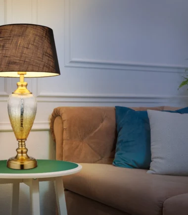 Šarmantna stona lampa impresionira svojim antičkim dizajnom i visokokvalitetnim materijalima. Okruglo, antičko postolje napravljeno od starog metala boje mesinga daje lampi nostalgičan dodir. Abažur od prozirnog stakla u zlatnom gradijentu boje i crni tekstilni abažur pružaju toplo i prijatno osvetljenje. Sa prečnikom od 380 mm i snagom od 40 W, stona lampa stvara prijatno svetlo u svakoj prostoriji. Grlo E27 nudi mogućnost individualnog dizajna osvetljenja. Praktični prekidač na kablu olakšava rukovanje svetiljkom. Ova stona lampa je savršen dodatak za one koji vole šarm prošlih vremena i žele da stvore ugodan ambijent. Postavite stilske akcente u svom domu ovom stonom lampom.