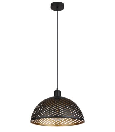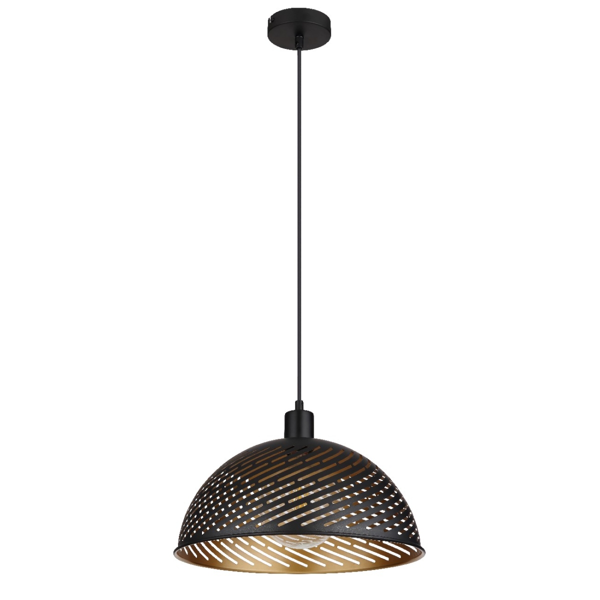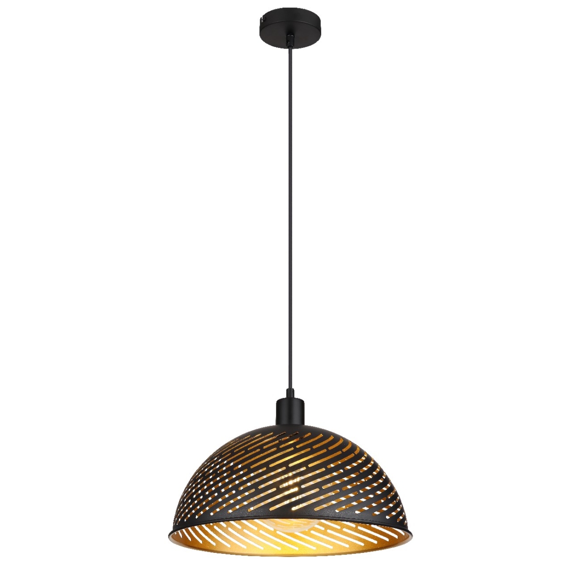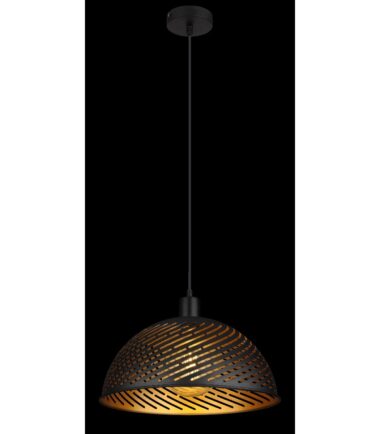 Ova moderna visilica inspiriše svojom prelepom šarom. Crni kabl prodire iz plafonske osnove i završava se na E27 grlu na dubini od 1,2 metara. Prelep crno zlatni abažur (Ø36cm) sa odličnim dekorativnim detaljima nalazi se na grlu E27, što vam takođe pruža mogućnost da sami odredite sijalicu do maksimalne snage od 60 vati.