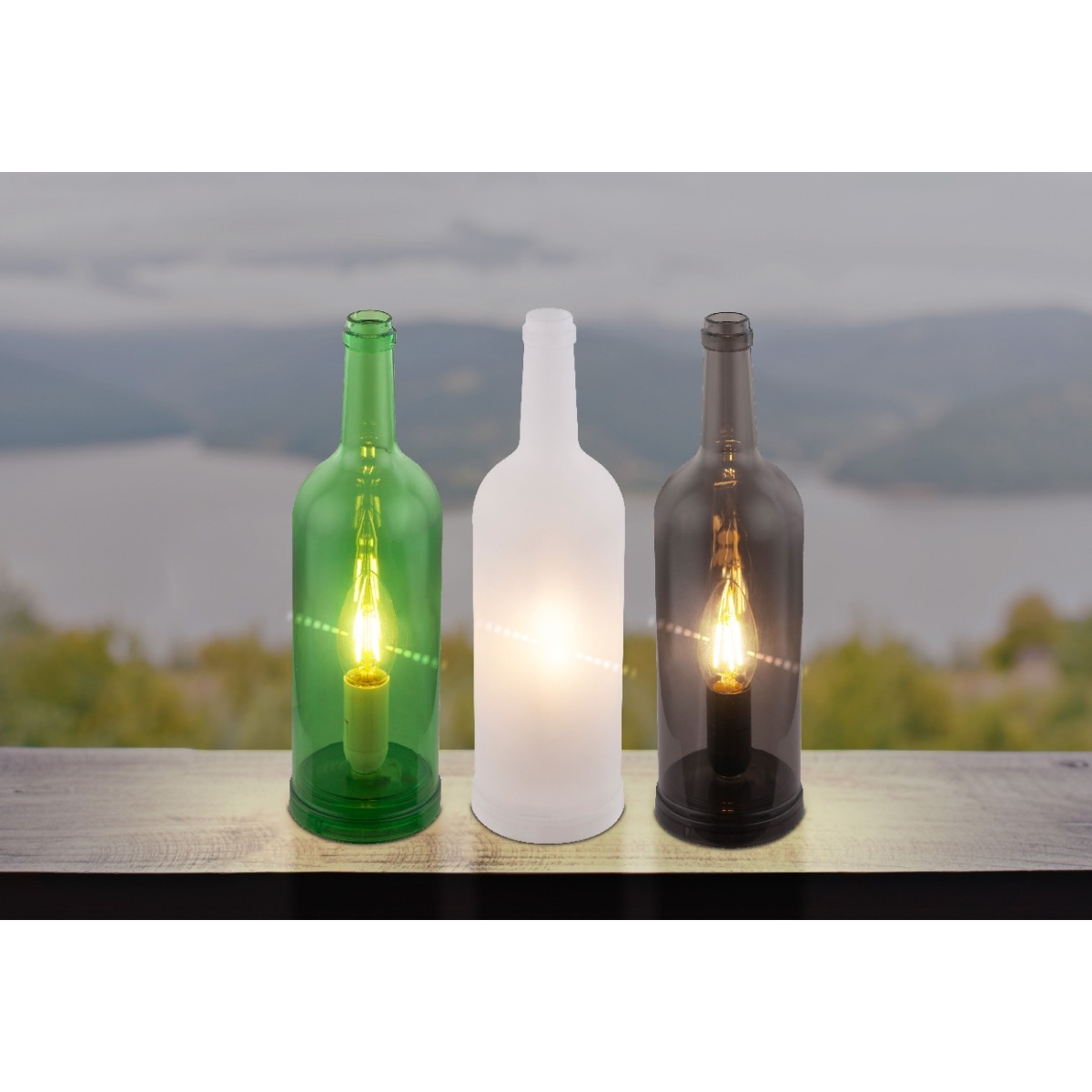 Dvodelni prikaz ove stolne lampe u boji dima ili satiniranog akrilnog stakla u obliku flaše impresionira svojim prelepim oblikom.