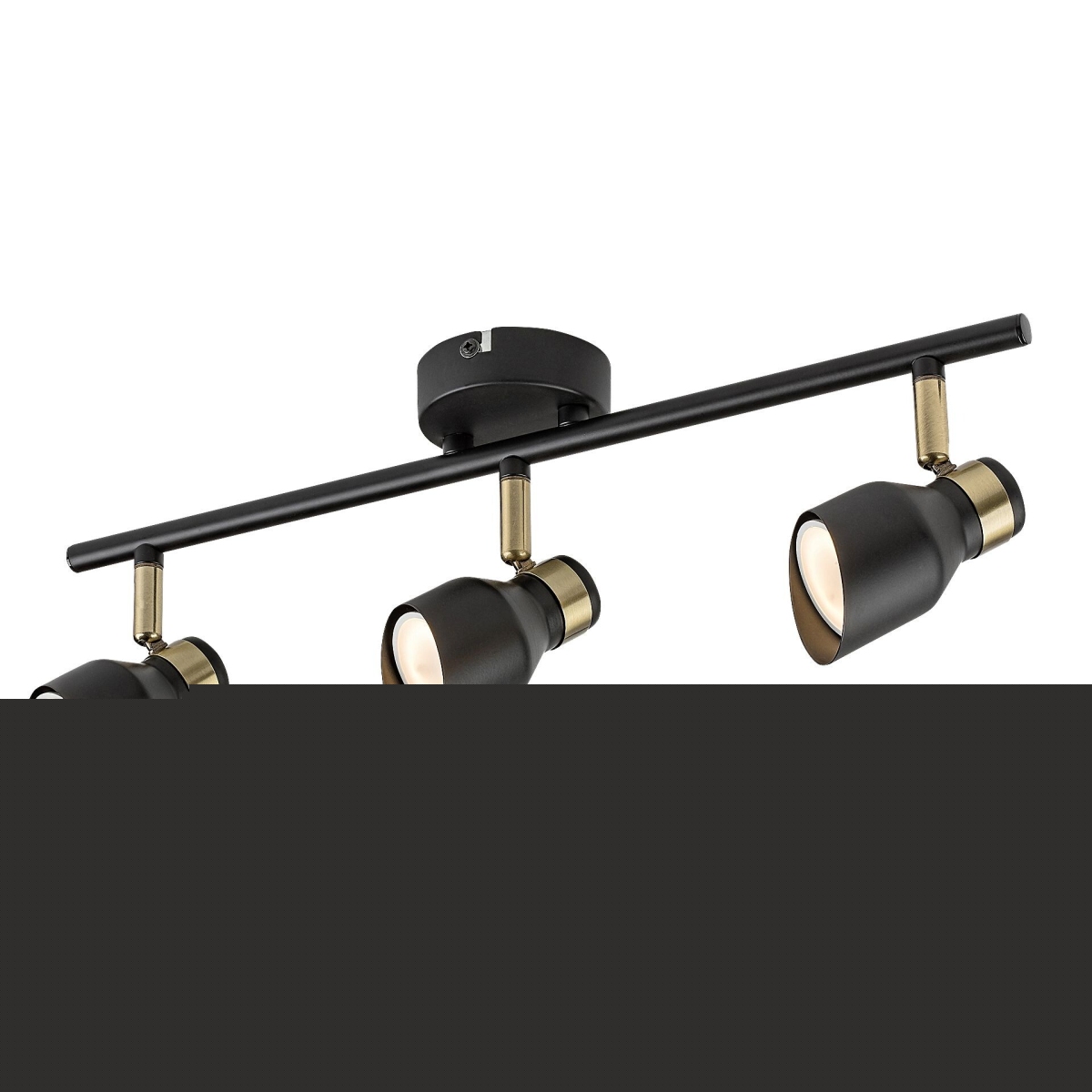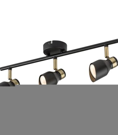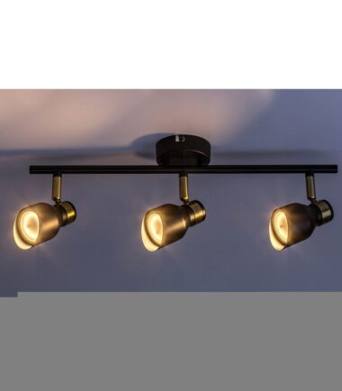 Moderna Lilou plafonska lampa sa 3 sijalice može biti dobar izbor u dnevnoj sobi, spavaćoj ili radnoj sobi. Mat crni potpuno metalni model upotpunjen je elementima zlatne boje, dajući ovoj lampi elegantan izgled. Lilou se može pričvrstiti na plafon uz pomoć male, okrugle ukrasne osnove. Glave lampe su postavljene jedna pored druge na horizontalnoj traci pričvršćenoj za dekorativnu osnovu. Glave lampe imaju cilindrične abažure koji su uvučeni i otvoreni na dnu, i fleksibilni su, tako da možete usmeriti njihovu svetlost po želji. Lilou se može koristiti sa tri izvora svetlosti, svaki sa snagom do 25 V. Tip utičnice je GU10. U zavisnosti od vaših preferencija i prostorije u koju želite da instalirate lampu, možete odabrati izvore svetlosti koji zrače toplo ili prirodno belo svetlo. Dimenzije priveska Lilou sa 3 sijalice su sledeće: širina 450 mm, prečnik svakog abažura 55 mm, rastojanje lampe od plafona 180 mm, prečnik ugradnje 80 mm. Ovaj model se isporučuje bez izvora svetlosti.