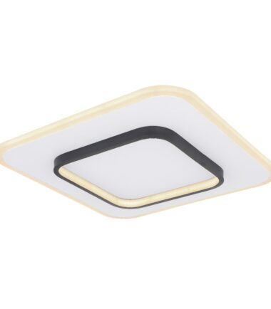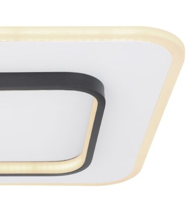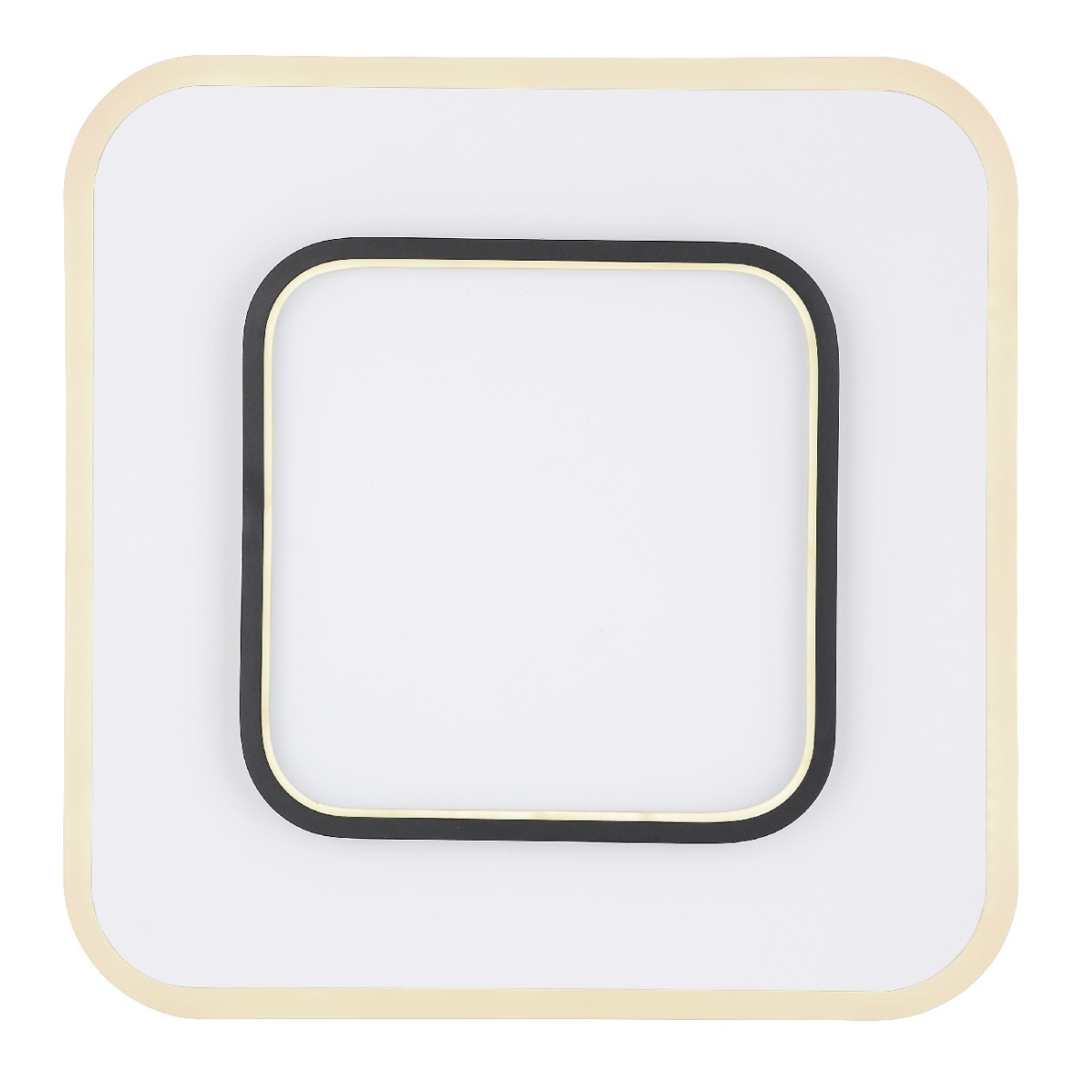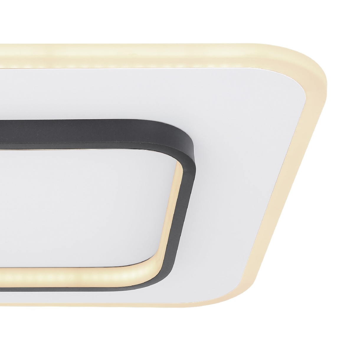 Ova kvadratna plafonska lampa iz serije LIMA (45,8×45,8 cm) ističe se svojim jednostavnim dizajnom napravljenim od belog metala i opalnog akrila. Kvadratni crni prsten na sredini plafonske lampe je još jedna karakteristika, što je čini lakom za kombinovanje. LED sijalice obezbeđuju 2500 lumena jake svetlosti. Pored toga, uključeni daljinski upravljač ne samo da vam nudi mogućnost da prigušite svetlo, već i da podesite boju svetla u nekoliko koraka između tople bele (3000 Kelvina) i hladno bele (6000 Kelvina) po vašim preferencijama. Pomoću ove plafonske lampe možete napraviti elegantan ambijent u svom enterijeru.