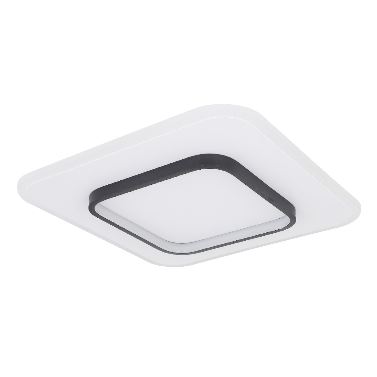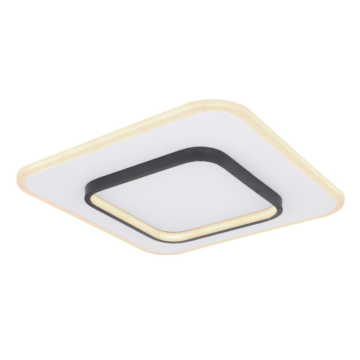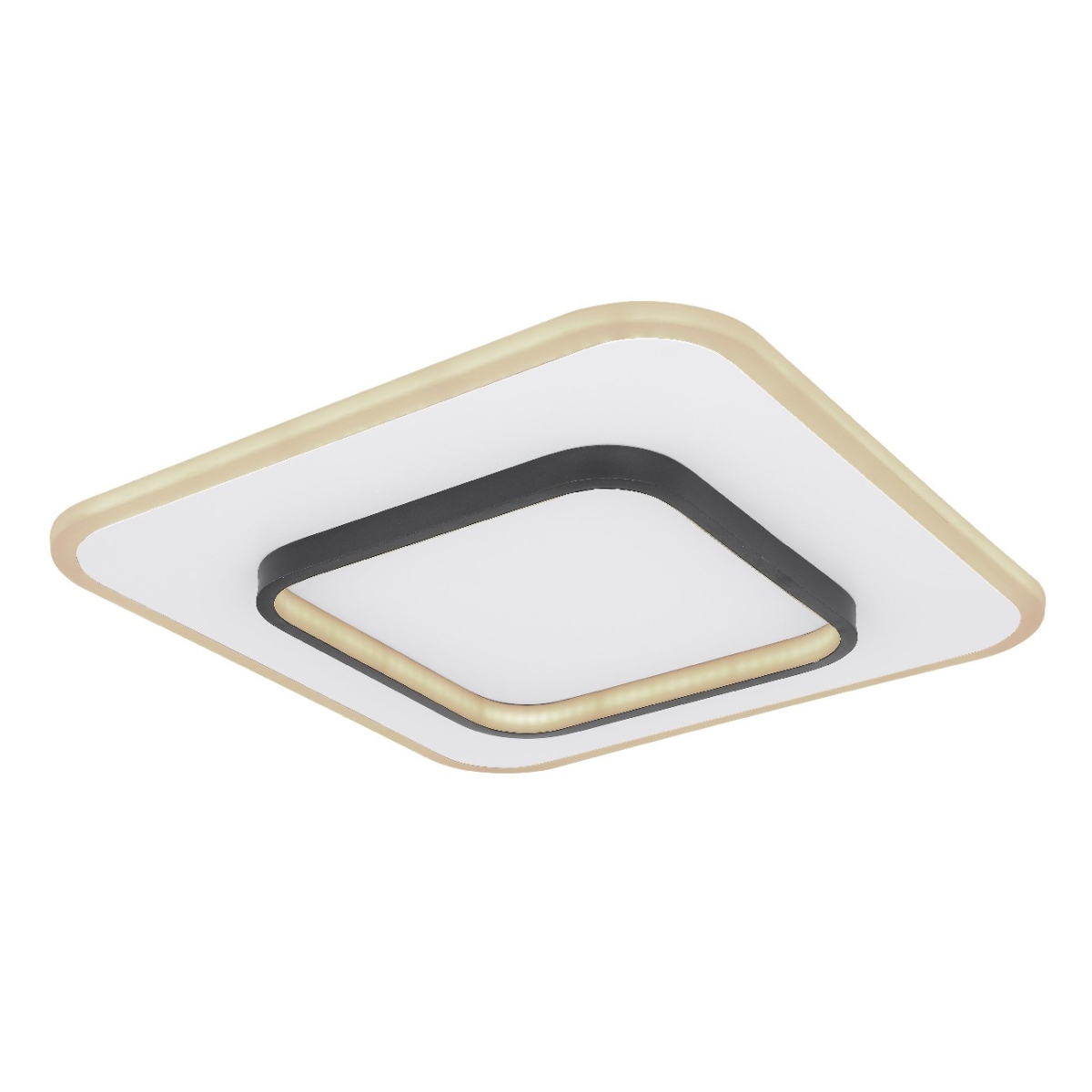 Ova kvadratna plafonska lampa iz serije LIMA (45,8×45,8 cm) ističe se svojim jednostavnim dizajnom napravljenim od belog metala i opalnog akrila. Kvadratni crni prsten na sredini plafonske lampe je još jedna karakteristika, što je čini lakom za kombinovanje. LED sijalice obezbeđuju 2500 lumena jake svetlosti. Pored toga, uključeni daljinski upravljač ne samo da vam nudi mogućnost da prigušite svetlo, već i da podesite boju svetla u nekoliko koraka između tople bele (3000 Kelvina) i hladno bele (6000 Kelvina) po vašim preferencijama. Pomoću ove plafonske lampe možete napraviti elegantan ambijent u svom enterijeru.