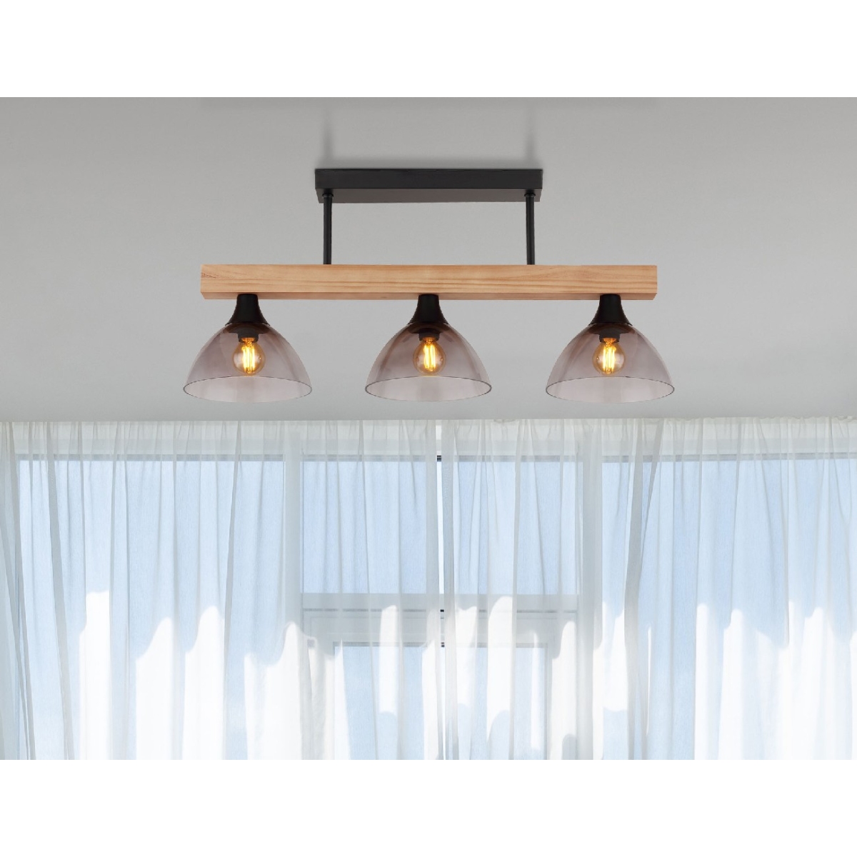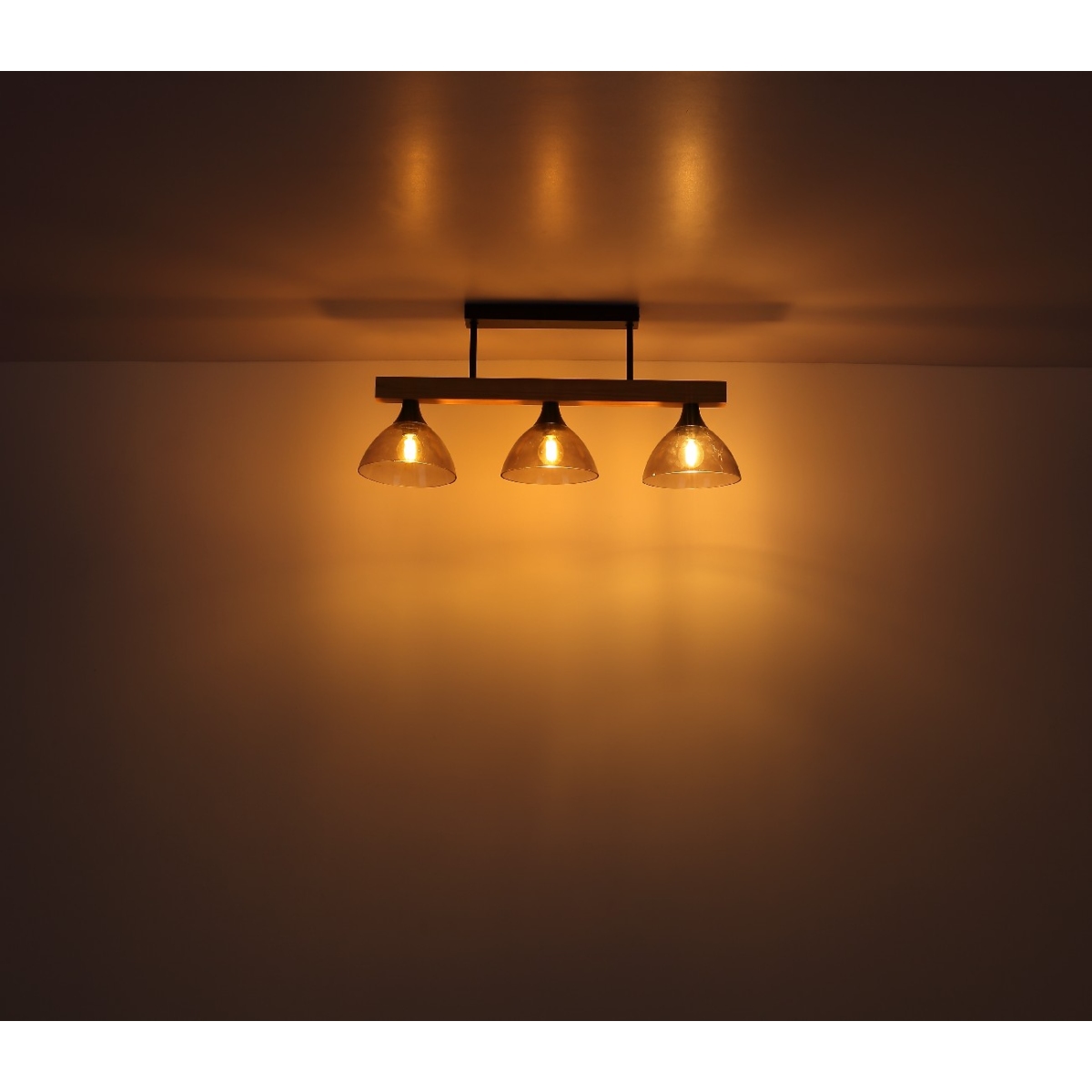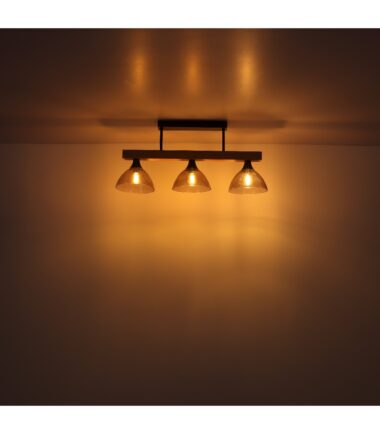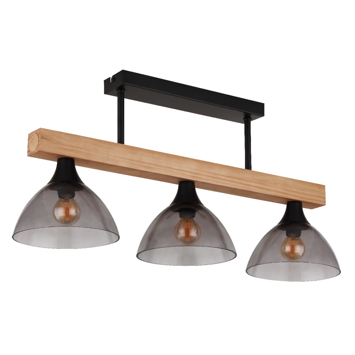 Ova sjajna visilica LINDI serije impresionira svojim elegantnim dizajnom. Od pravougaonog crnog plafonskog nosača, dve crne mat metalne šipke se nastavljaju do drvene grede dužine 65 cm. Na njoj se nalase tri E27 grla i svako sa oblikovanim staklenim abažurom u boji dima. E27 grla vam omogućavaju da sami odredite boju svetla i jačinu do maksimalnog izlaza od 15 vati. Zbog dugovečnosti i uštede energije preporučujemo LED sijalice.