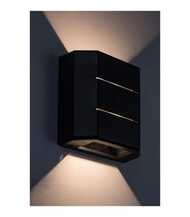 Spoljna zidna lampa Lippa modernog stila je u potpunosti napravljena od plastike u crnoj boji. Možete ga postaviti na terasu ili bilo gde na spoljašnjem zidu kuće. Zahvaljujući svom posebnom dizajnu, projektuje spektakularne svetlosne zrake na zid nagore i nadole, obezbeđujući izvanredno vizuelno iskustvo. Lippa sadrži ugrađeni LED izvor svetlosti snage 6W, svetlosnog toka od 70 lumena i životnog veka od 25.000 sati. Sijalica ima temperaturu boje od 3000K i shodno tome sija toplom belom svetlošću. Dimenzije kvadratne spoljne lampe su 120x120mm, a udaljenost od zida je samo 50mm. Ima IP54 zaštitu koja osigurava da je zaštićen od prašine i prskanja vode iz svih pravaca. Na spoljnu zidnu lampu Lippa nudimo 5 godina garancije.