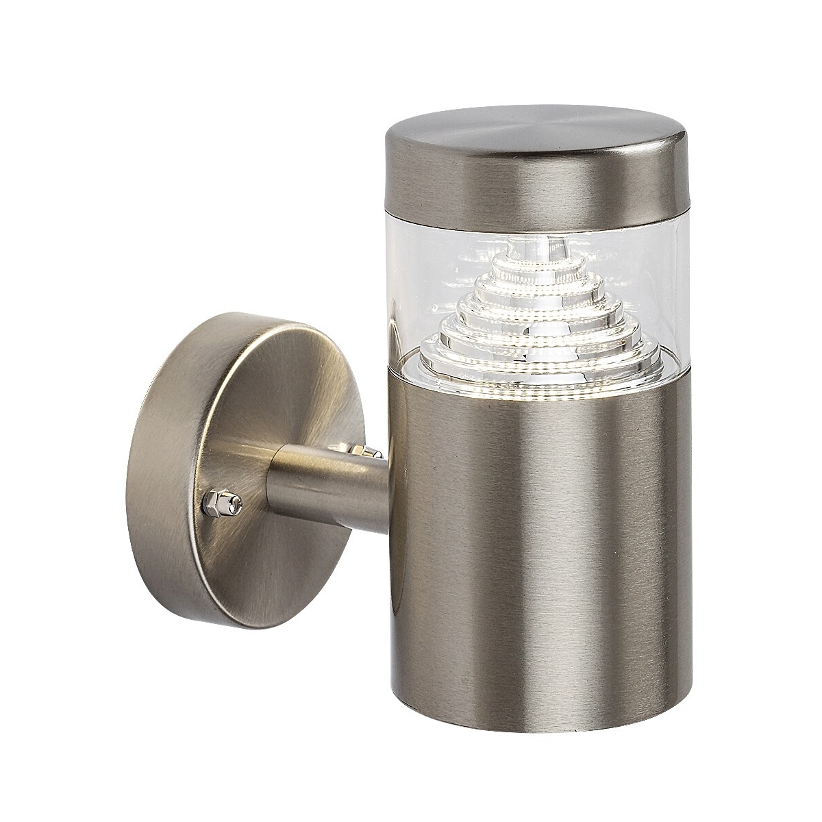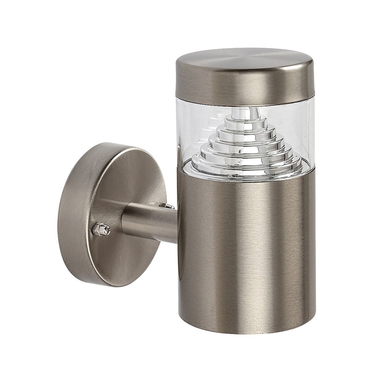 Lisbon spoljna zidna lampa modernog stila je napravljena od nerđajućeg čelika i dopunjena je prozirnim plastičnim abažurom. Ova lampa sa okruglim ukrasnim postoljem može se postaviti na terasu ili bilo gde na spoljašnjem zidu vaše kuće gde je osvetljenje potrebno za bezbedno kretanje. Lisabon sadrži ugrađeni LED izvor svetlosti snage 7W, svetlosnog toka od 560 lumena i životnog veka od 25.000 sati. Sijalica ima temperaturu boje od 4.000K i shodno tome sija prirodnom belom svetlošću. Dimenzije spoljne cilindrične svetiljke su sledeće: i visina i rastojanje od zida su 145mm, prečnik ugradnje je 85mm. Ima IP54 zaštitu koja osigurava da je zaštićen od prašine i prskanja vode iz svih pravaca. Na spoljnu zidnu lampu Lisbon nudimo 5-godišnju garanciju.