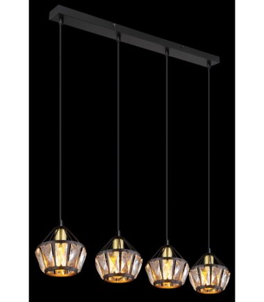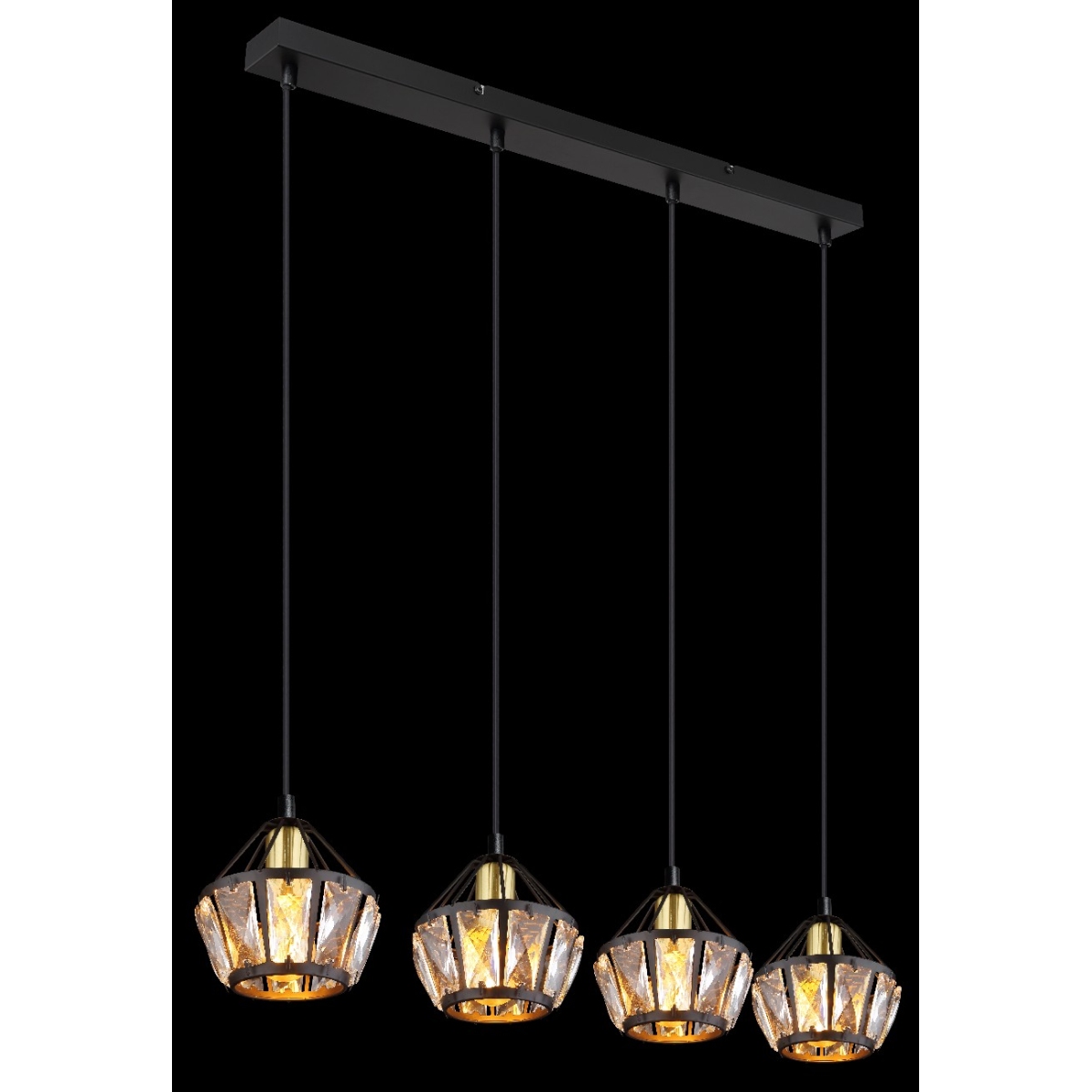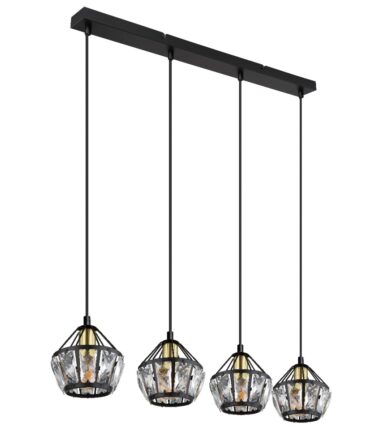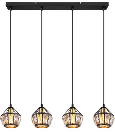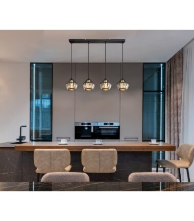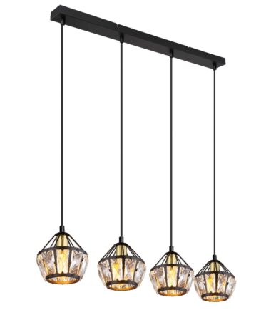 Ova sjajna visilica serije LOIS inspiriše modernim dizajnom. Četiri crna kabla dugačka 1,5 m, svaki sa E14 grlom, pružaju se sa 73 cm dugačke plafonske osnove. Opremljene su oblikovanim staklenim kristalnim abažurima i omogućavaju vam da sami odredite boju svetla i jačinu do maksimalnog izlaza od 40 vati. Zbog dugovečnosti i uštede energije preporučujemo LED sijalice.