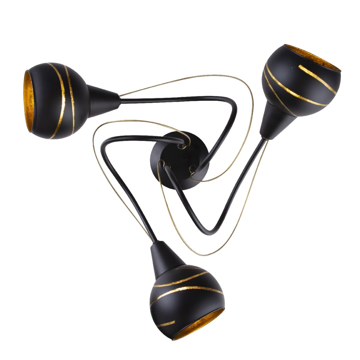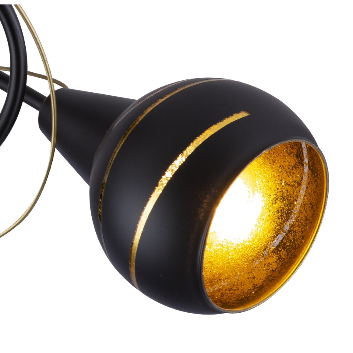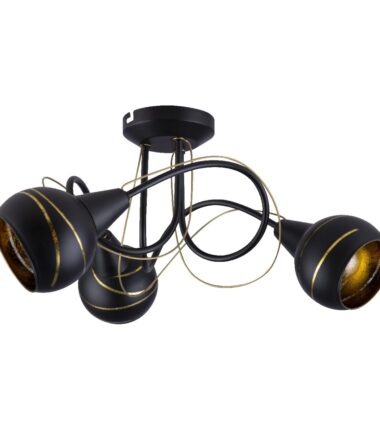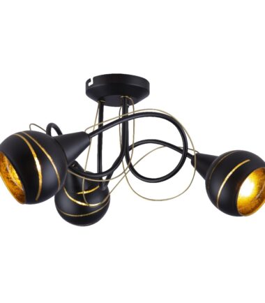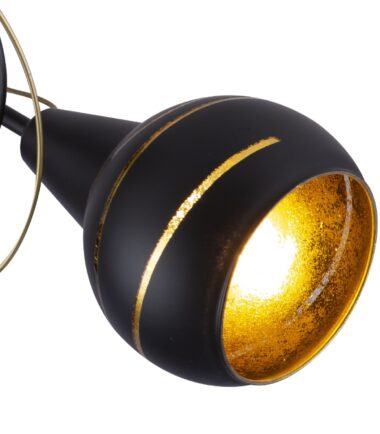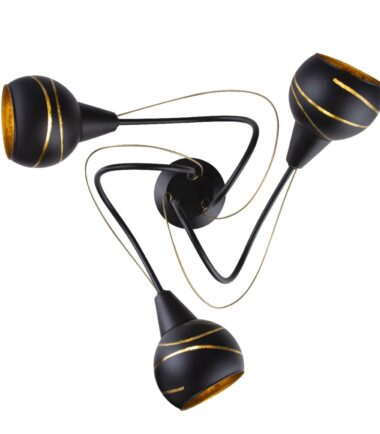 Ova ekstravagantna plafonska lampa napravljena od crnog metala sa zlatnim elementima savršeno postavlja scenu za neobične crne lampe sa šarama zlatnih listova. Sa zakrivljenim granama, ona će apsolutno privlačiti pažnju. Ostali elementi iste serije mogu se savršeno kombinovati i dati vašem životnom prostoru izuzetan ambijent. Plafonska lampa prečnika 45 cm ima tri grla E14, što vam omogućava da slobodno odaberete sijalicu (max. 40W). Zbog njihove trajnosti i uštede energije preporučujemo LED sijalice.