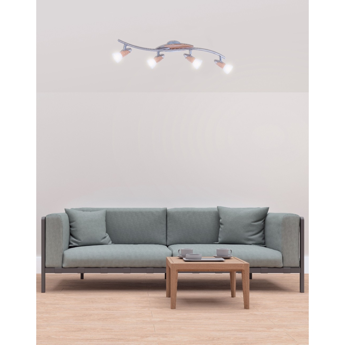 Ovaj jednostavan spot, kombinacija je prirodnog i modernog. Izrađen je od nikl mat metala i drveta, može se postaviti praktično u bilo kojoj prostoriji. Četiri grla E14 prekrivena su satiniranim staklenim abažurima koji lampi daju predivan izgled. Imate mogućnost da koristite sijalicu (max. 40W) po vašem izboru i zbog njihove dugovečnosti i uštede energije preporučujemo LED sijalice.