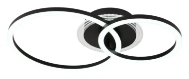 Plafonska lampa LORETTA sa dva pričvršćena prstena nudi elegantno, pravougaono rešenje za osvetljenje. Crno metalno kućište i akrilni abažur u crnoj, mat i opal boji pružaju moderan izgled. Sa svetlosnim izlazom od 1850 lumena i CCT-om od 3000K do 6500K, možete podesiti boju svetlosti. Funkcija prigušivanja i funkcija memorije vam omogućavaju da sačuvate i podesite željeno raspoloženje osvetljenja.