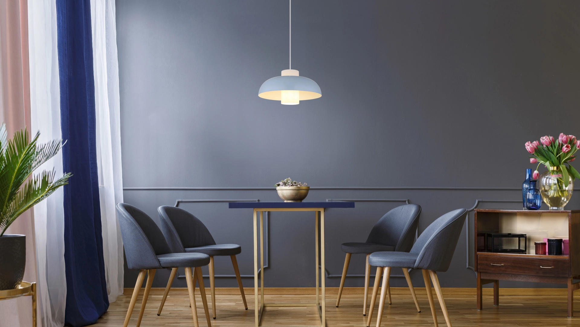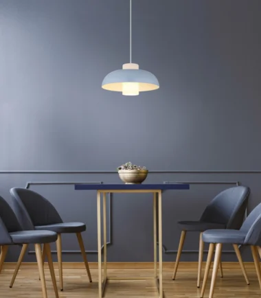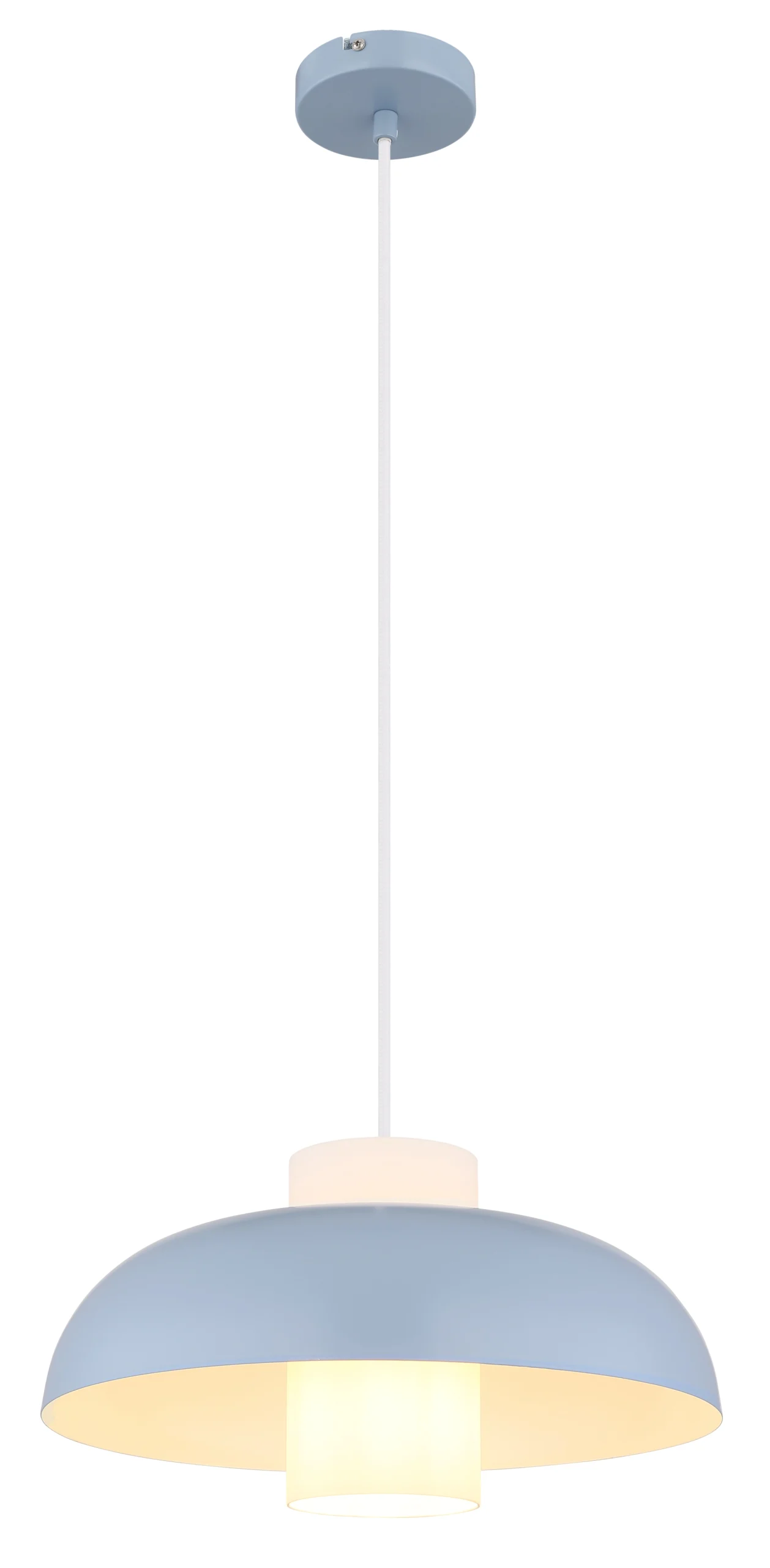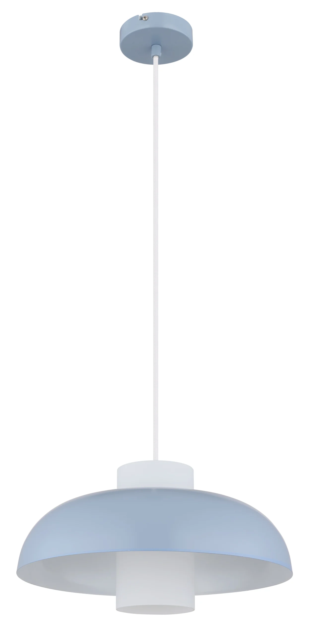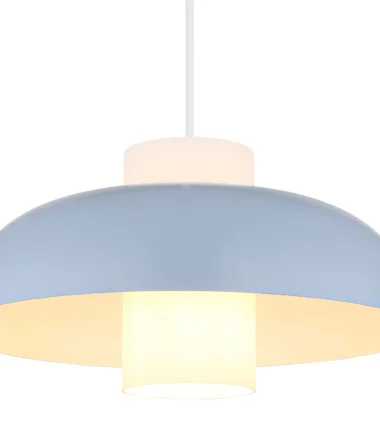 Viseća lampa KOEN ubeđuje svojim ravnim, okruglim dizajnom i cilindrom od opalnog stakla unutra. Plavi, mat metalni abažur i telo daju lampi moderan izgled. Pogodna je za sijalicu E27 (ekskluzivno) i savršeno se uklapa u različite stilove života.