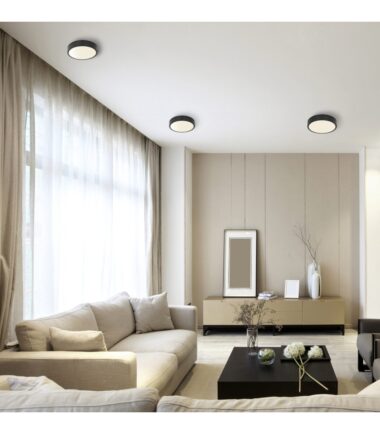 LUCENA je okrugla plafonska lampa u mat crnoj boji napravljena od satiniranog akrila. Lucena se može zatamniti i proizvodi toplu belu svetlost. Prečnik 170 mm. Jednostavan, ali elegantan dizajn savršeno se prilagođava vašem domu.