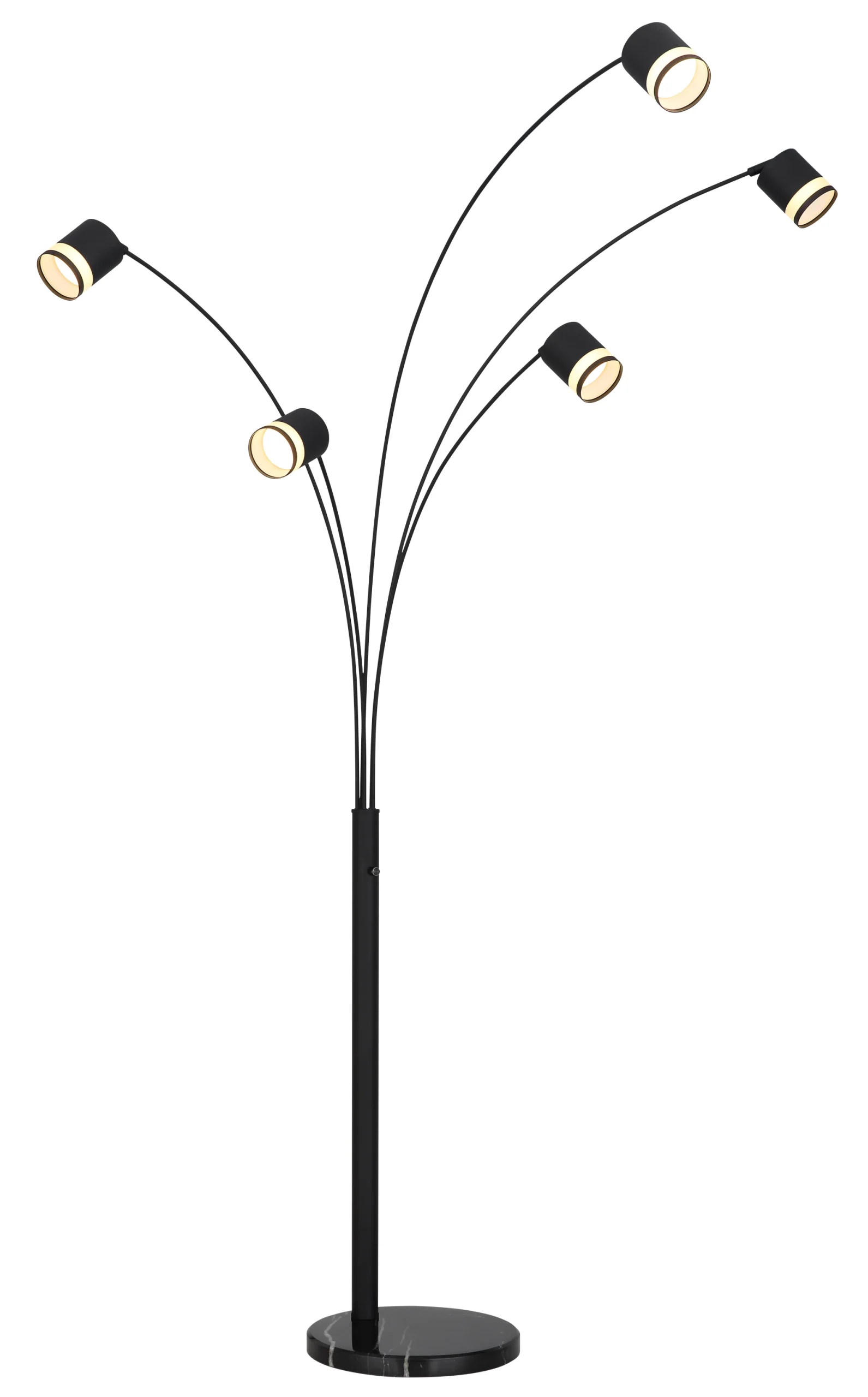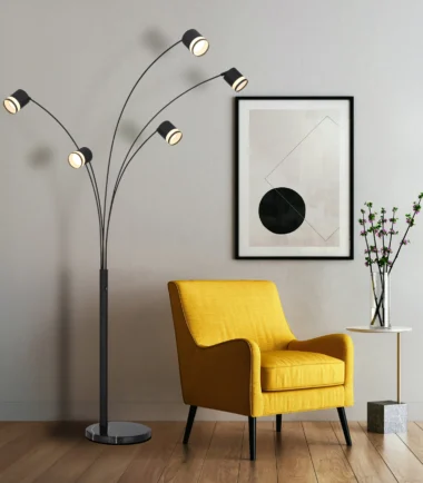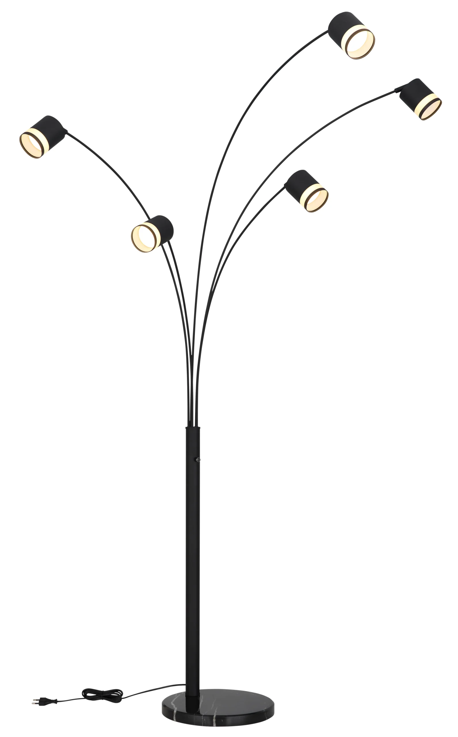 Zakrivljena podna lampa LUCERO sa tri kraka i cilindričnim reflektorima kombinuje moderan dizajn sa funkcionalnošću. Telo napravljeno od mat crnog lakiranog metala savršeno se usklađuje sa opalnim plastičnim abažurima, koji šire prijatnu svetlost. Sa širinom od 700 mm i dužinom od 1100 mm, savršeno se uklapa u velike prostorije i stvara prijatnu atmosferu. Funkcija prigušivanja omogućava podešavanje intenziteta svetlosti prema raspoloženju. Sa svetlosnim izlazom od 364 lumena na 3000 K, LUCERO nije samo stilska, već i praktična za svaki dnevni boravak.
