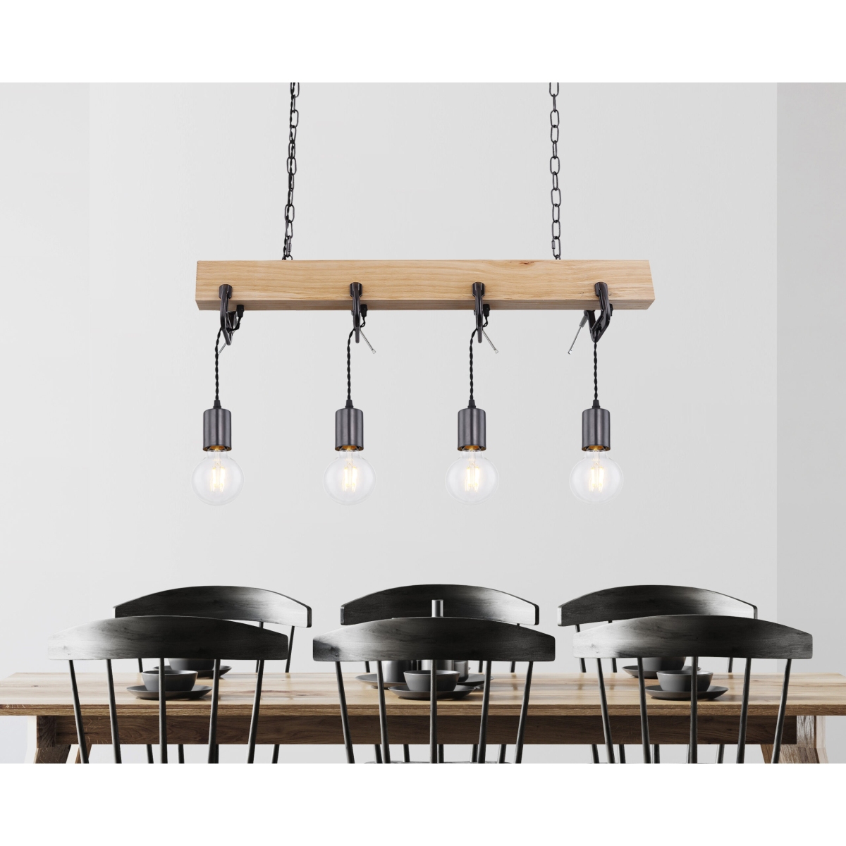 Pogledi su zagarantovani! Ova visilica ističe se svojim elegantnim i modernim dizajnom. Visilica ima ukupnu dužinu od 120 cm i opremljena je sa četiri E27 grla. Sijalice nisu uključene, tako možete izabrati pravu sijalicu za vas (max. 60W) i sami odrediti boju svetla i svetleći intenzitet. Zbog uštede energije i dugovečnosti preporučujemo korišćenje LED sijalica. Uz dodatne modele iz ove serije, možete upotpuniti svoj životni prostor.