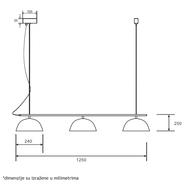 Dimenzije 1250 x 240 mm; h – 250 mm