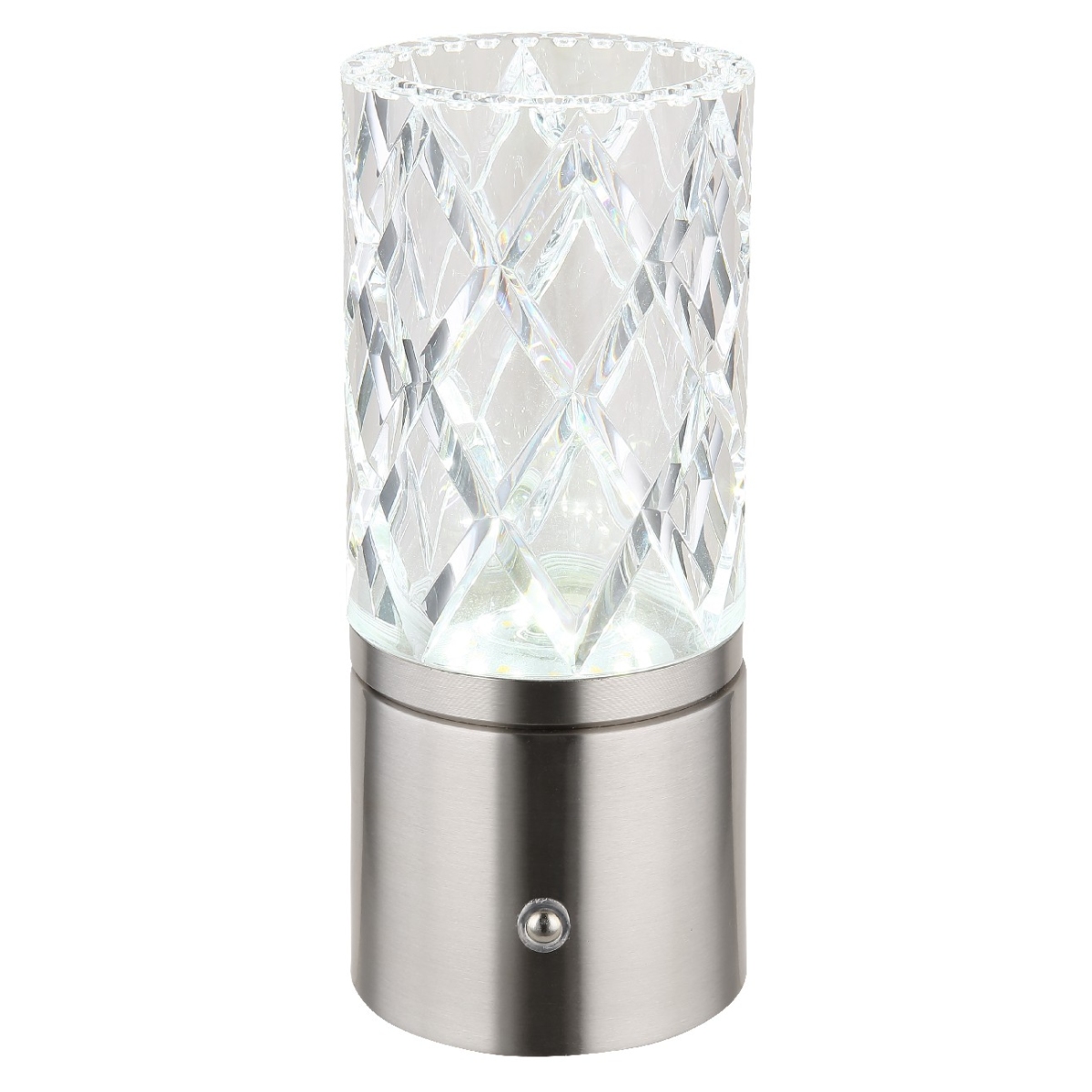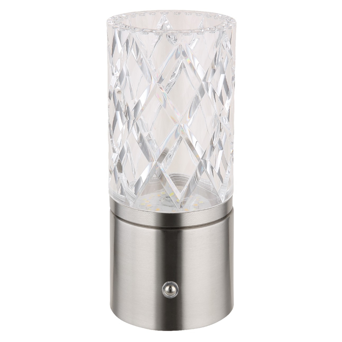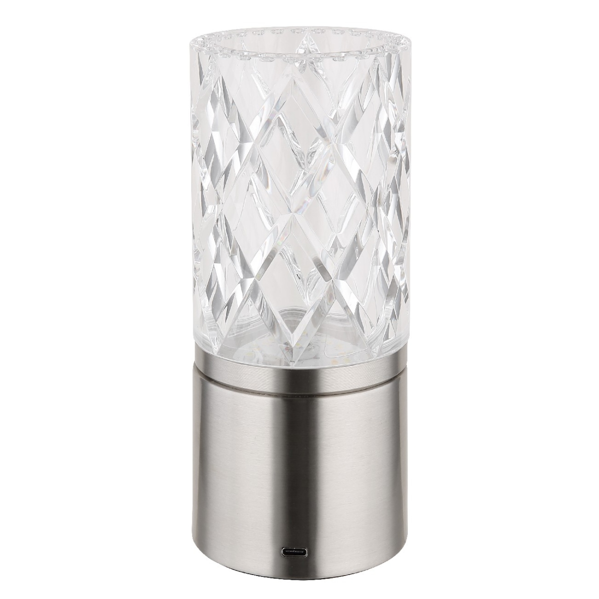 Stilska stona lampa napravljena od mat nikla, hroma i providnog akrila je elegantan dodatak vašem domu. Sa praktičnim prekidačem za uključivanje/isključivanje na dodir i bezstepenim dodirnim dimerom, možete podesiti osvetljenost po svojoj želji. Boje se mogu fiksirati kako bi se stvorilo željeno raspoloženje. Moćna baterija CR18650 sa 1800mAh i 3.7V je uključena i nudi impresivno vreme rada od 6-8 sati. Sa prečnikom od 80mm i visinom od 190mm, lampa se savršeno uklapa na bilo koji sto. Beli PVC kabl je dugačak 500mm i pruža fleksibilnost u postavljanju. Stona lampa ima efikasnu LED diodu od 2.5W i nudi podesivu temperaturu boje od 2700 do 6500 Kelvina. Priloženi USB kabl omogućava lako punjenje. Adapter nije uključen.