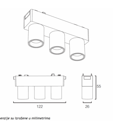 DETALJI: Snaga 6W, 3000K, napon 48V DC, crna boja, ugao osvetljenja 24°, daje usmerenu svetlost.