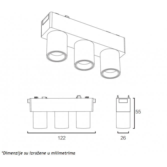Magnetic led slim svetiljka sa 3 usmerena spot reflektora crne boje, iz najsavremenije magnetic slim linije proizvoda šinske magnetne rasvete, koju karakterišu najnovija tehnička rešenja i tanak dizajn kućišta, zahvaljujući čemu se ističe moderan i elegantan izgled, dok je rasvetno telo u prostoru manje primetno, dajući istu količinu svetlosti.