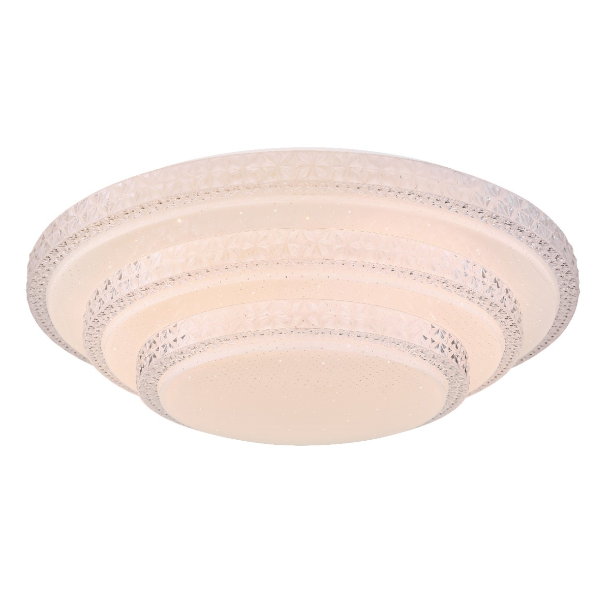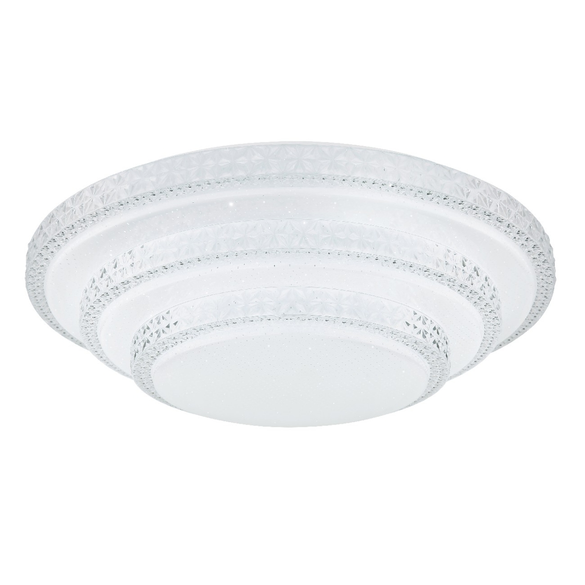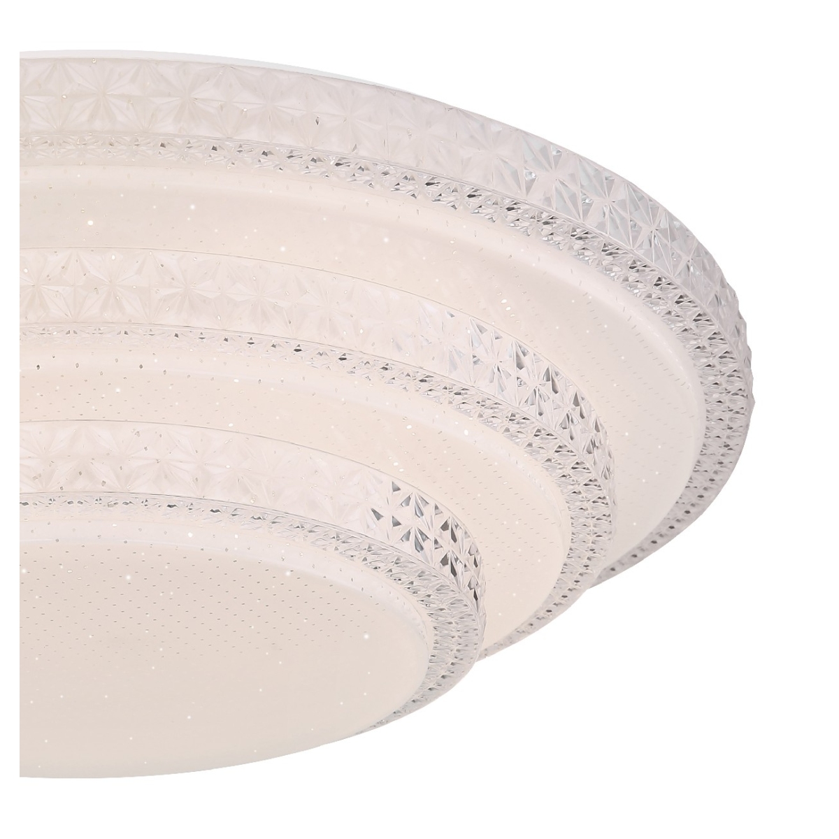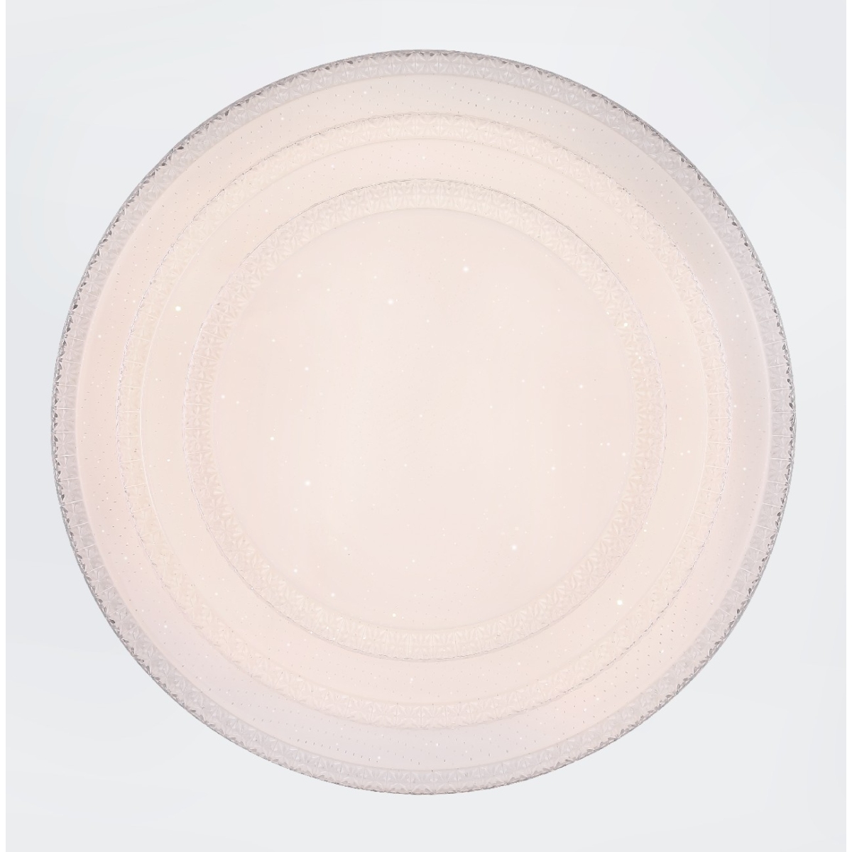 Ova ekskluzivna plafonska lampa MAGNIFIQUE (Ø 49cm) napravljena od opal-belog akrila sa svetlucavim dekor efektima. Pomoću daljinskog upravljača, boja svetla se može podešavati i fiksirati u nekoliko faza između prijatnog toplo belog svetla od 3000K do hladno belog 6500K. Sa uključenom LED sijalicom od 30 vati, ova plafonska lampa obezbeđuje maksimalno 2300 lumena jako svetlo, može se zatamniti po želji i prilagoditi dotičnim situacijama. Pored toga, lampa ima funkciju noćnog svetla. Ova Smartlight lampa je jednostavna za rad pomoću Tuya Smart aplikacije (Android TM/IOS). Kontrola glasa je laka sa Amazon Echo Tm ili Google Home.