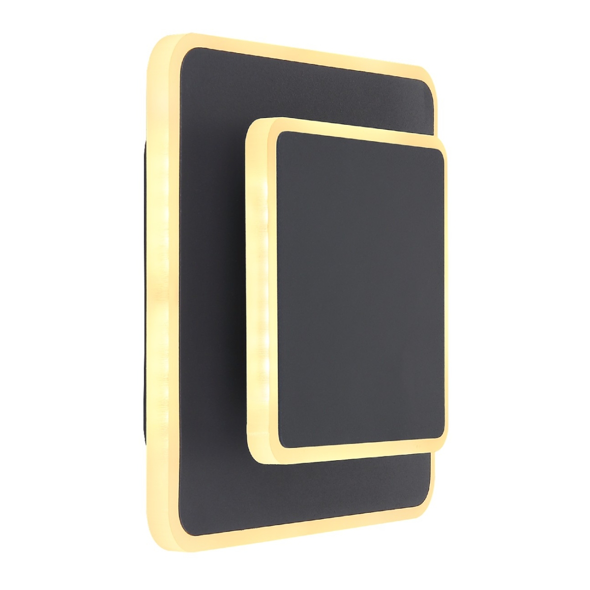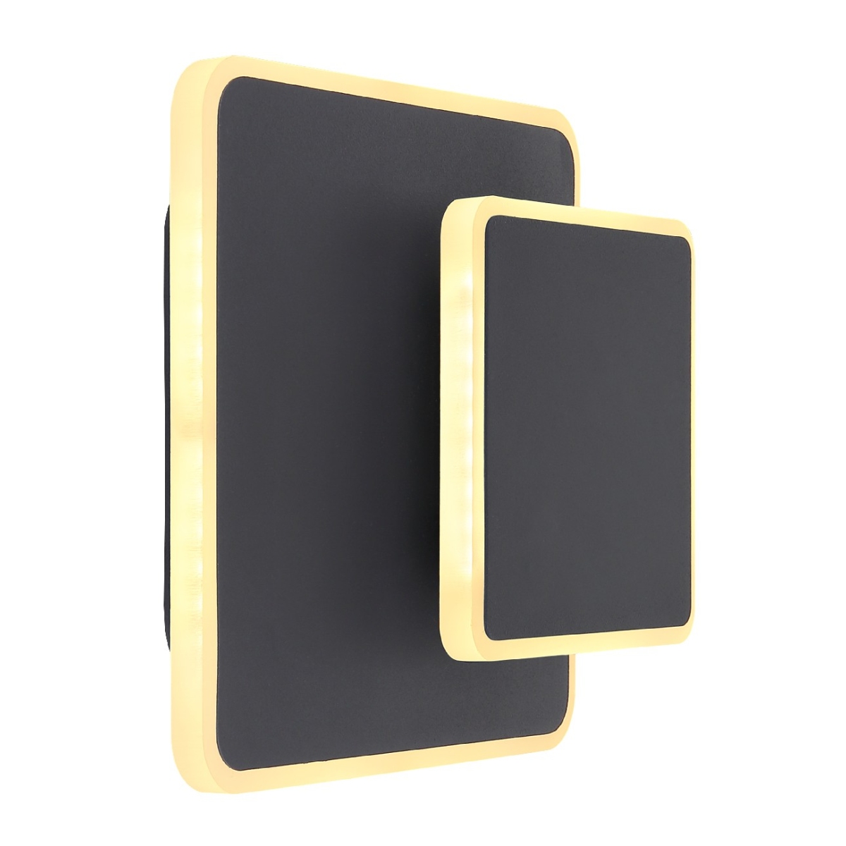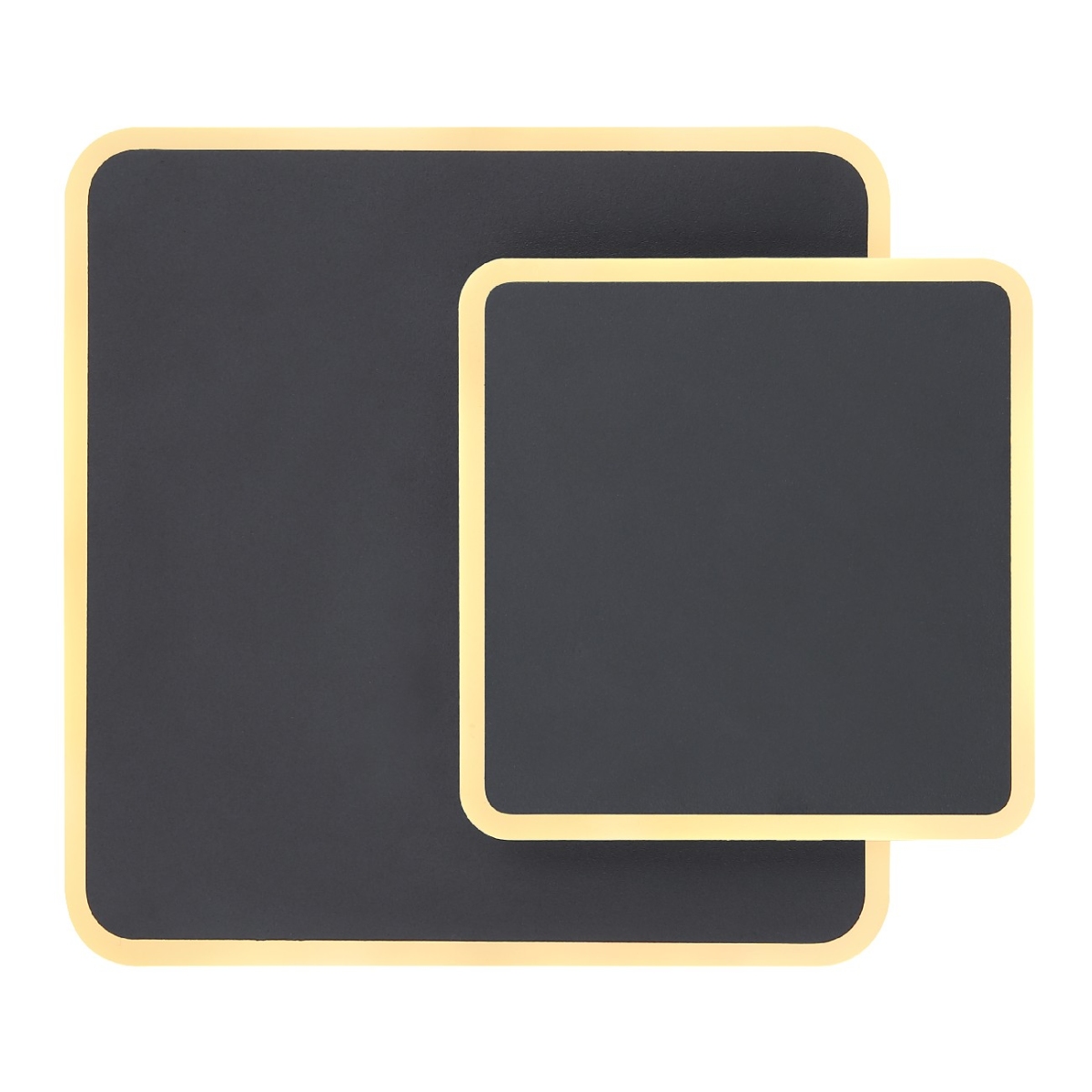 Ova moderna zidna lampa iz serije MANY (20×17 cm) divno se uklapa u ambijent raznih živih stilova zahvaljujući svom jednostavnom dizajnu napravljenom od crnog metala. Sastoji se od dva metalna kvadrata različite veličine, koji su raspoređeni jedan iznad drugog i svaki je uokviren opalnim akrilnim prstenom sa LED sijalicama. Uključene LED sijalce obezbeđuju 808 lumena jako svetlo prijatne lagane boje od 3000 Kelvina (topla bela). Pomoću ostalih artikala iste serije možete da dovršite celokupnu sliku u enterijeru.