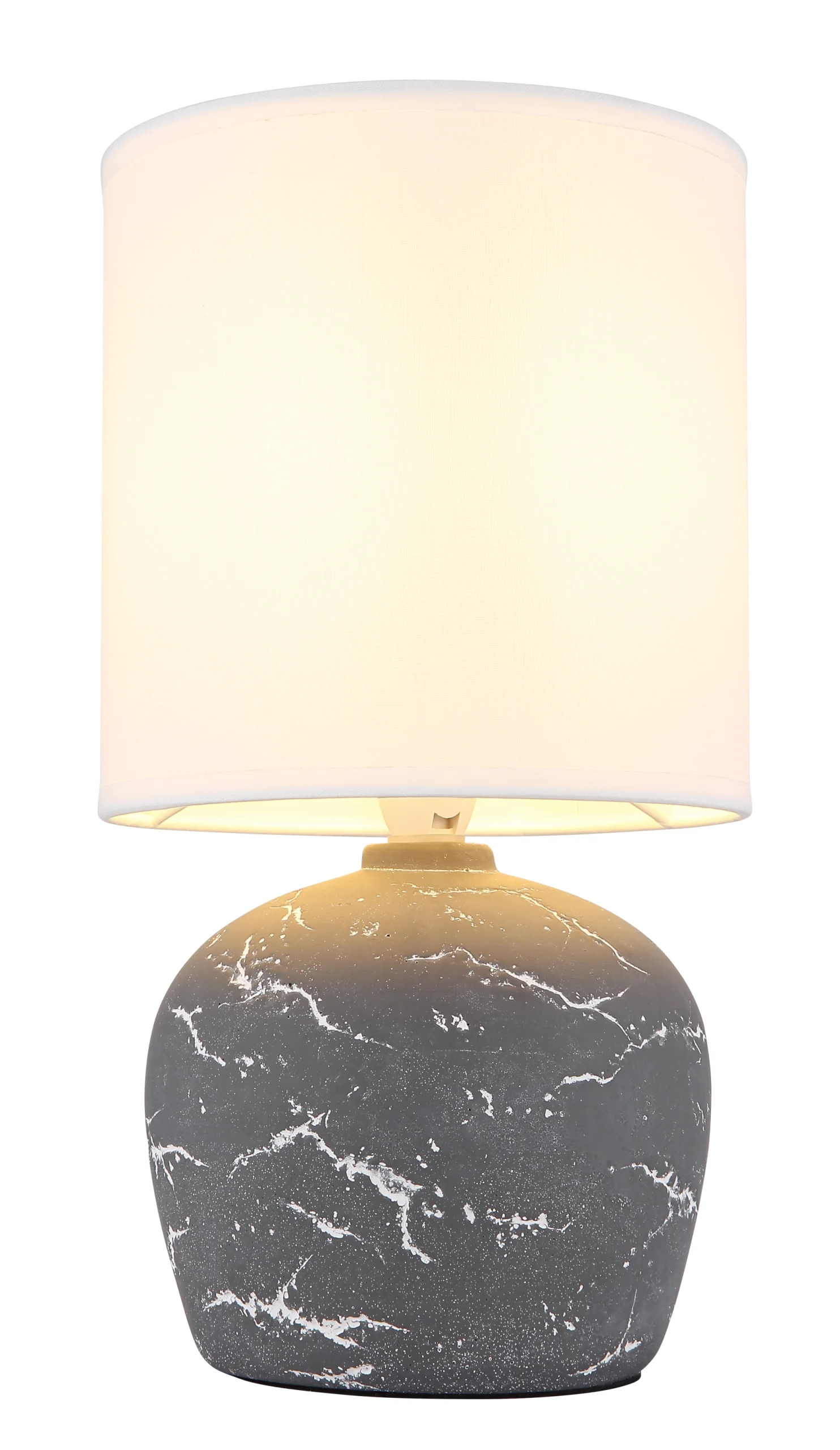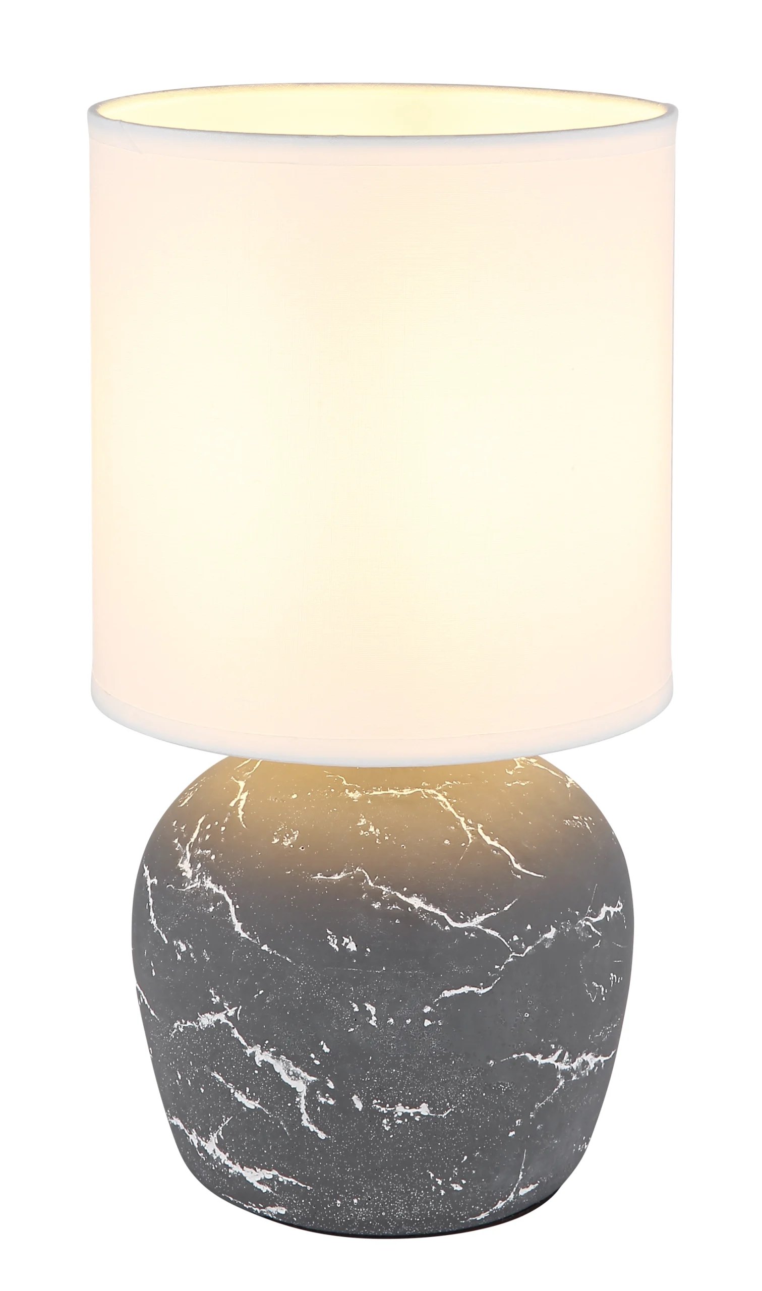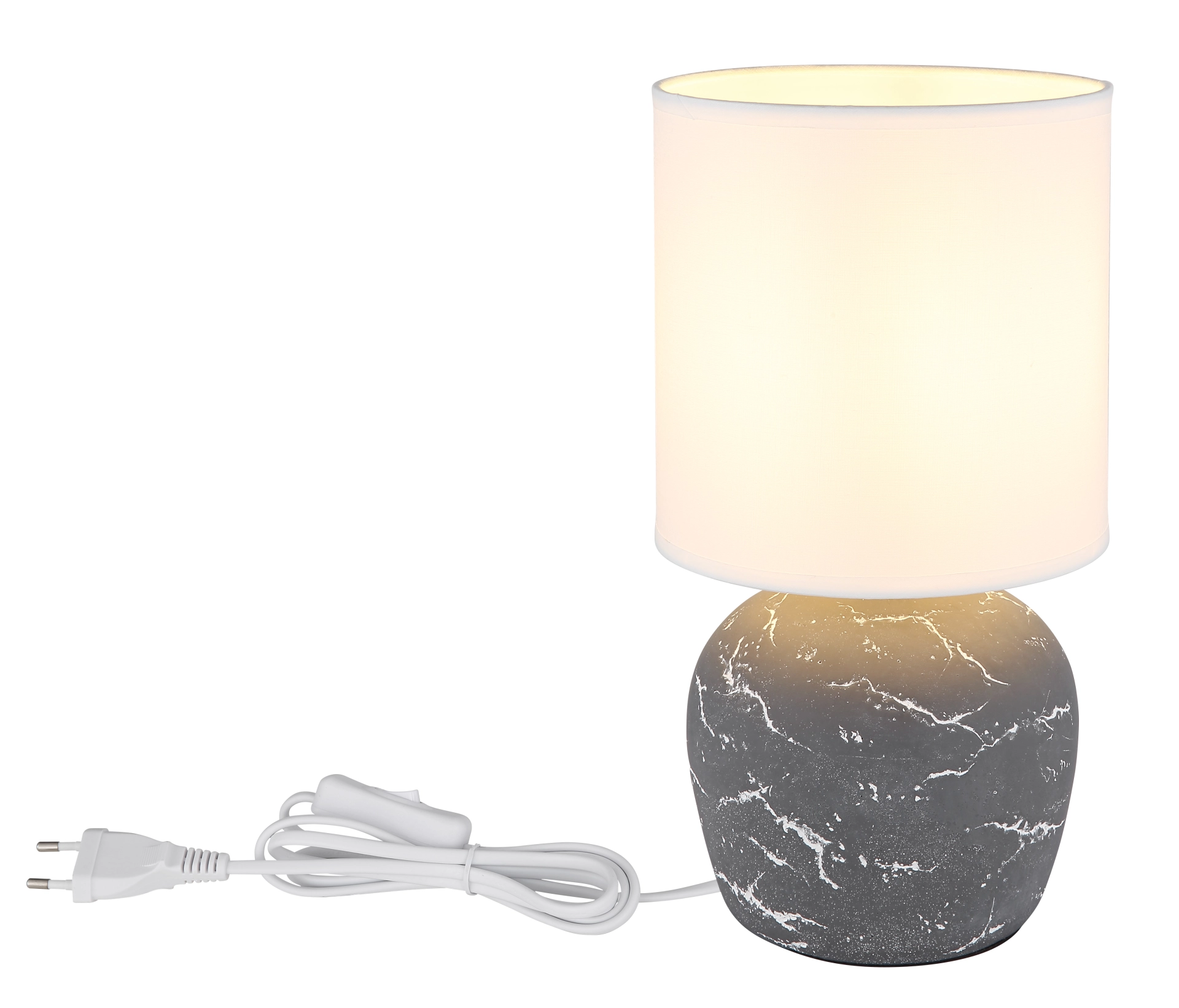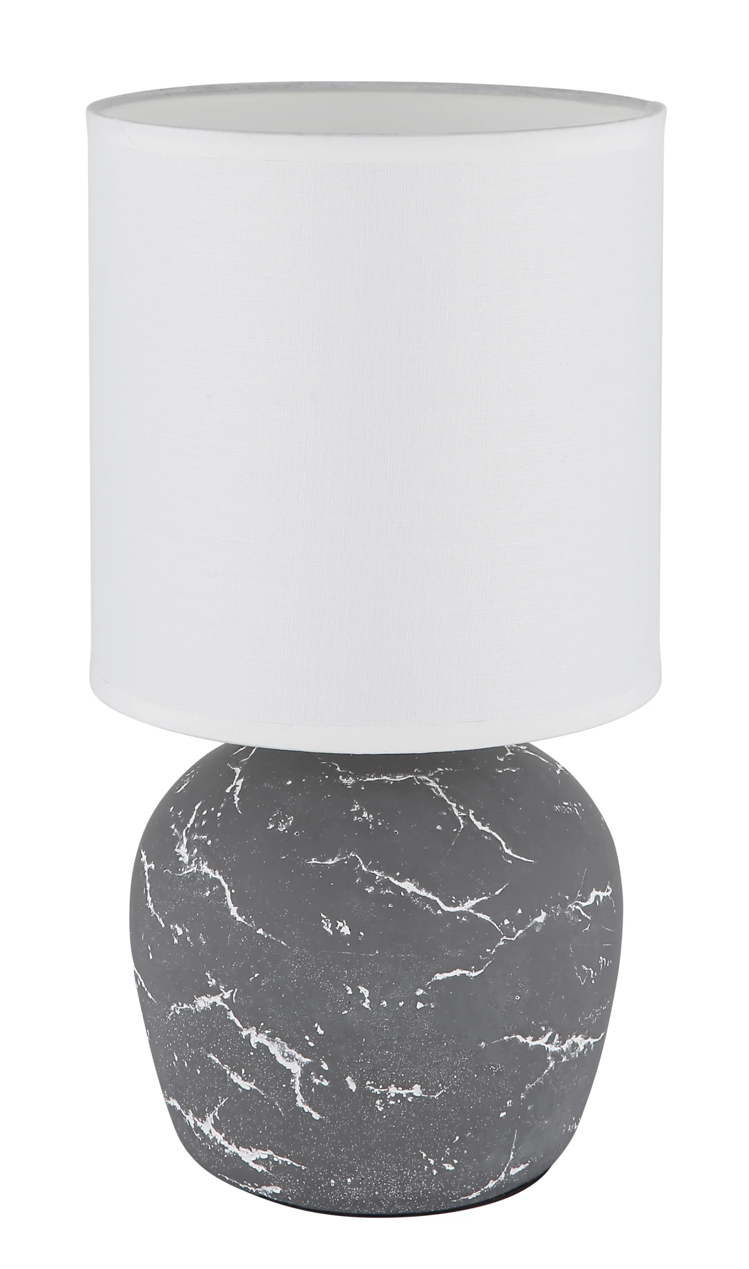 Stona lampa MARBLE kombinuje stilsku eleganciju sa praktičnom funkcionalnošću. Lufasto postolje od sive keramike impresionira svojom teksturiranom površinom, što lampi daje suptilnu sofisticiranost. Cilindrični abažur od tkanine u jarko beloj boji obezbeđuje nežnu, ravnomernu raspodelu svetlosti i harmonično se uklapa sa telom. Sa prečnikom od Ø:160 mm, stona lampa MARBLE nudi velikodušan izvor svetlosti, idealan za životne i radne prostore. Integrisani prekidač na kablu omogućava lako i praktično rukovanje svetiljkom. Opremljena grlom E14, lampa MARBLE se može kombinovati sa različitim sijalicama kako bi zadovoljila vaše individualne potrebe za osvetljenjem. Ova stona lampa nije samo funkcionalna, već je i stilski dodatak koji će svakoj prostoriji dodati elegantan dodir.