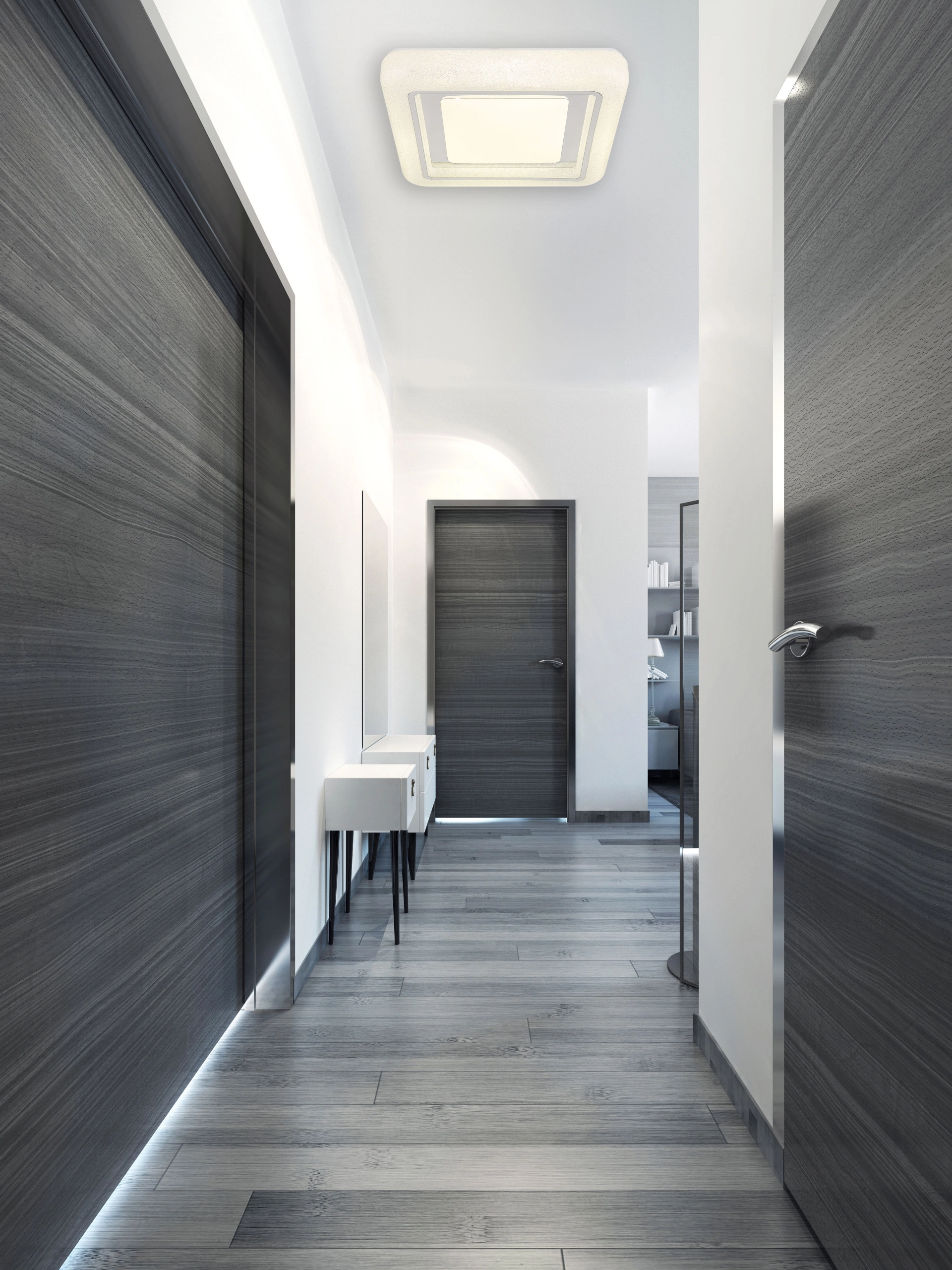 Plafonska lampa MARCIA kvadratnog dizajna sa kristalnim obodom i blistavim efektima nudi elegantno rešenje za osvetljenje. Belo metalno kućište i abažur od providnih plastičnih kristala sa hromiranim prstenom pružaju luksuzan izgled. Sa svetlosnim izlazom od 1607 lumena i svetlosnom temperaturom od 4000 K, ova svetiljka pruža briljantno osvetljenje. Idealna je za prostorije kojima je potreban stilski i blistav izvor svetlosti.