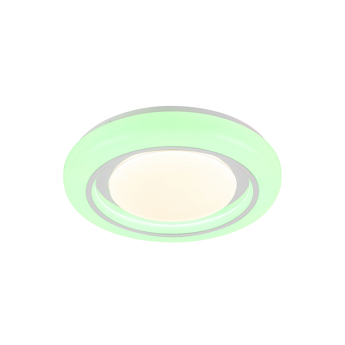 Moderan dizajn plafonske lampe savršeno će se uklopiti u enterijere i naglasiti njihov karakter. Zahvaljujući svom jedinstvenom izgledu, idealno će ispuniti ne samo funkciju rasvete, već i dekorativnu. Daljinski upravljač omogućava dimovanje, promenu boje svetla od 3000-6000K kao i promenu RGB boja
