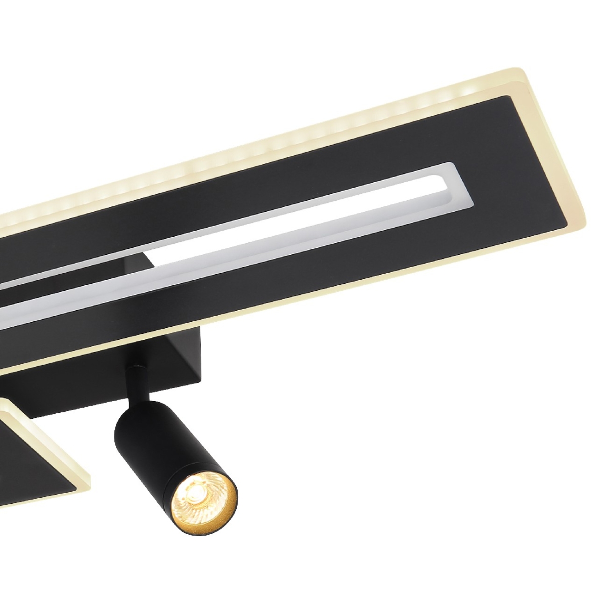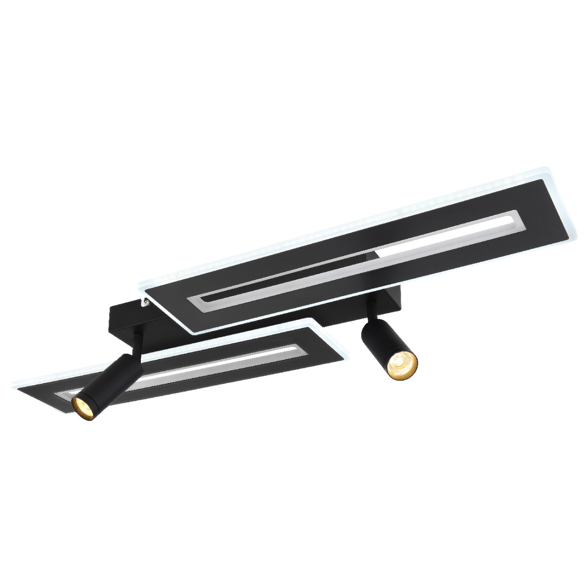 Ova izuzetno moderna plafonska lampa (87x31cm) impresionira ne samo svojim dizajnom, već pre svega svojim funkcijama. Sastoji se od 2 pravougaona LED panela sa crvenom, zelenom i plavom funkcijom i 2 cilindrična rotirajuća GU10 grla, lampa sija od 2700 Kelvina toplo bele do 6500 Kelvina hladno bele svetlosti. Pomoću obezbeđenog daljinskog upravljača i funkcije memorije možete da prigušite svetlo i promenite je na nekoliko nivoa svetlosti. Postavite nove akcente u svojim sobama.