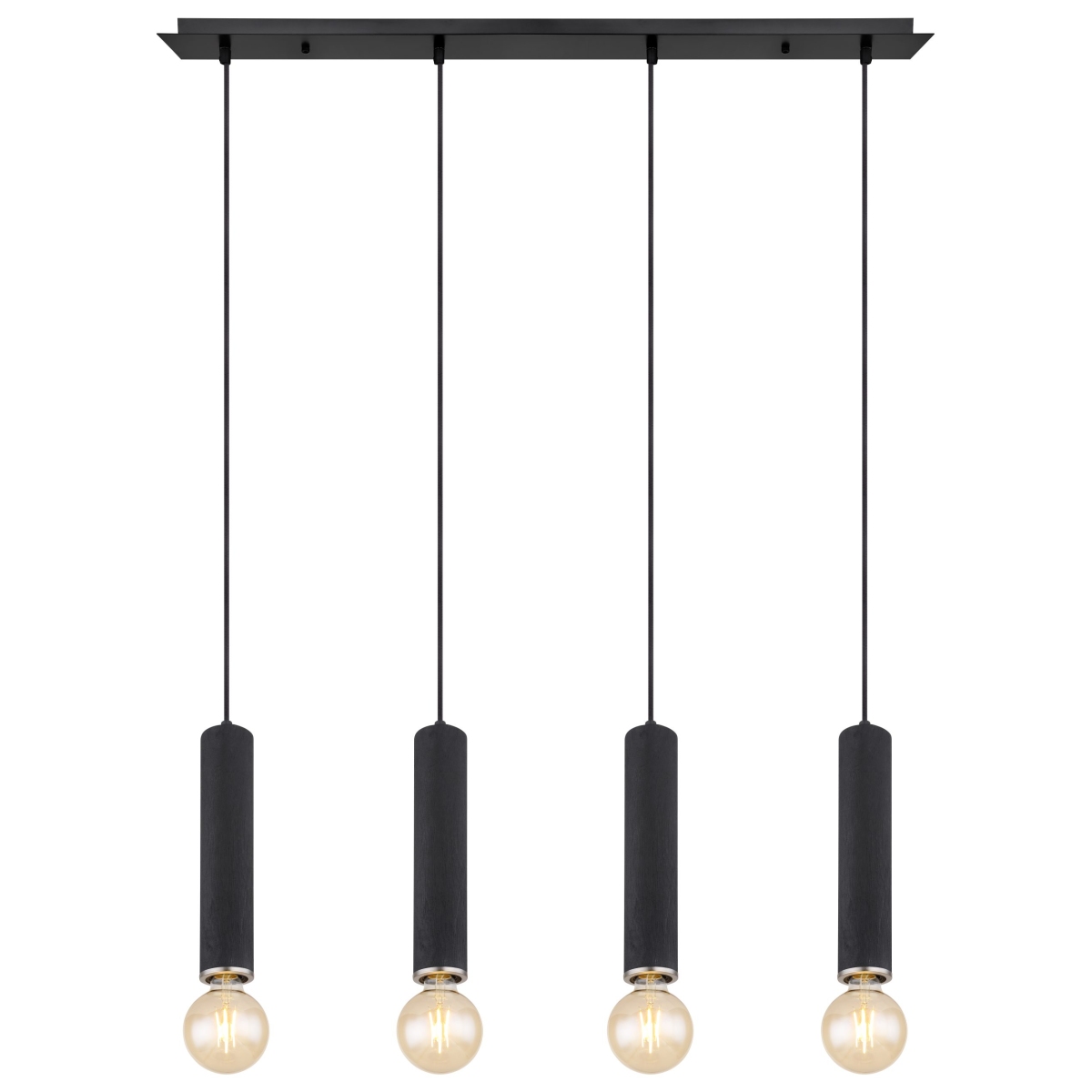 Ova visilica iz serije MARION (93×10 cm) je predivan dodatak vašem enterijeru. Sastoji se od četiri crno-mat metalna cilindra sa nikl-mat prstenovima, koji su fiksirani na metalnu ploču sa crnim kablovima. Grla u cilindrima mogu biti opremljene E27 sijalicama po vašem izboru, što vam pruža mogućnost da pojedinačno odredite boju svetla i jačinu. Sa ostalim modelima iste serije možete napraviti elegantan ambijent u svom domu.