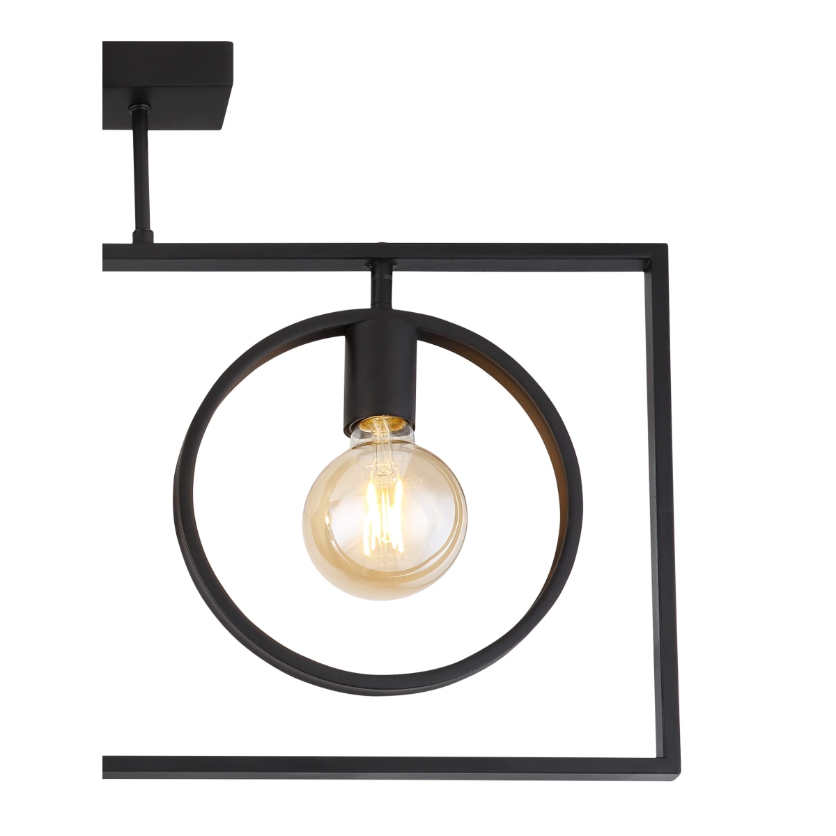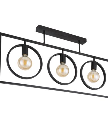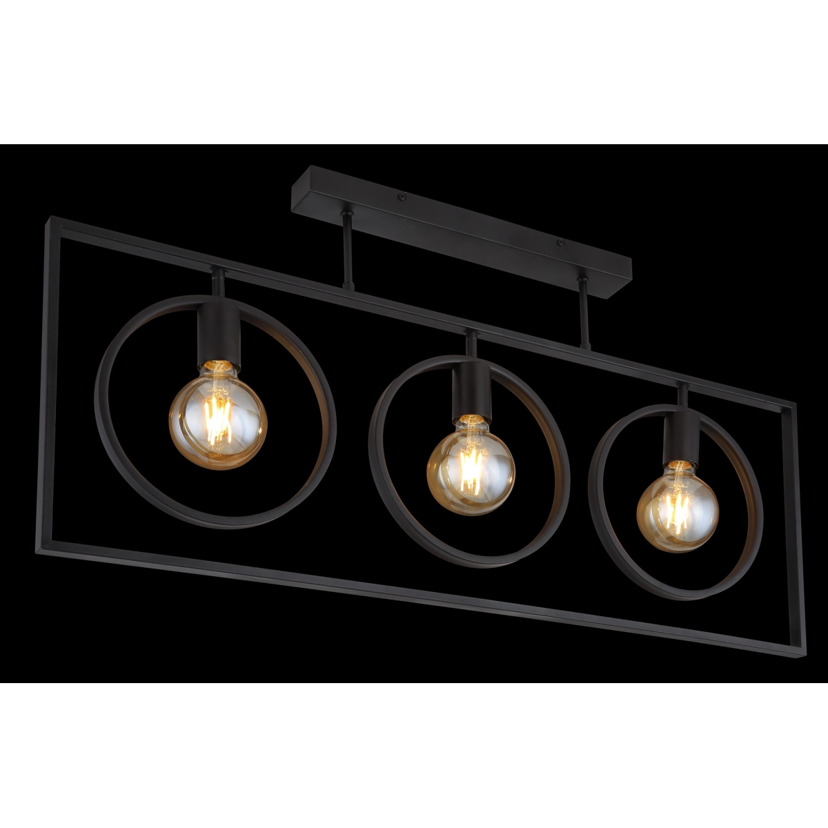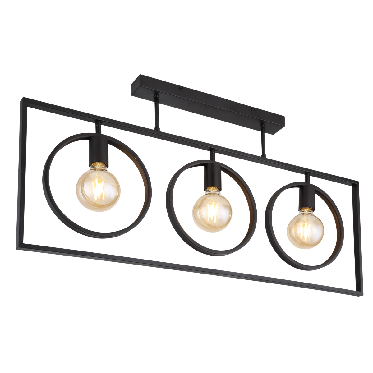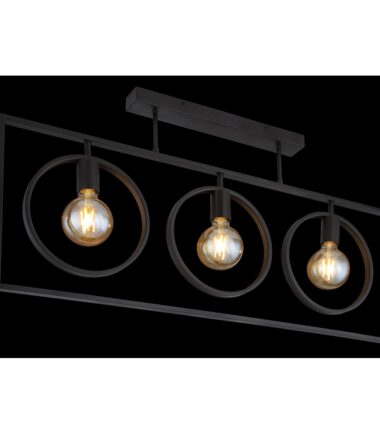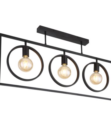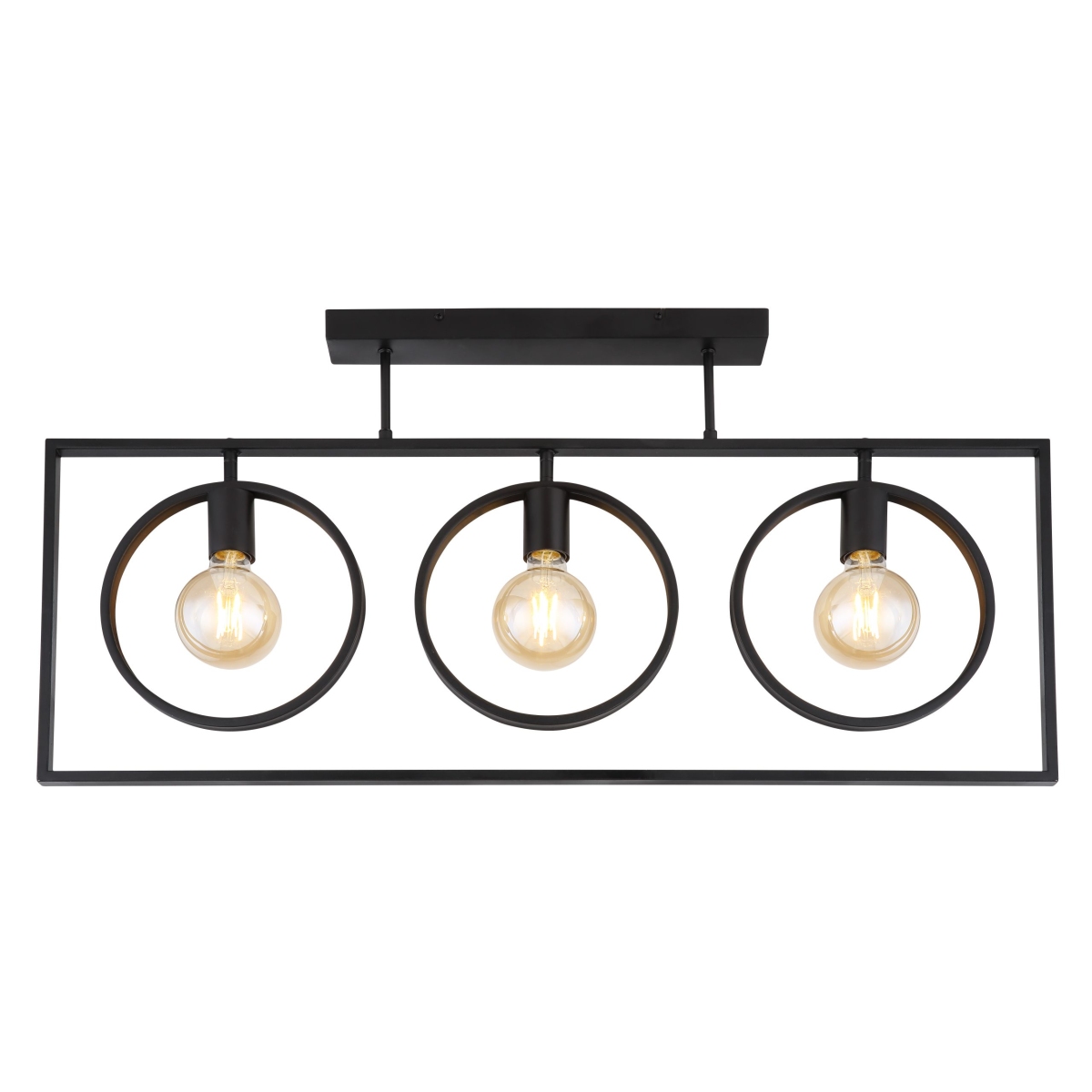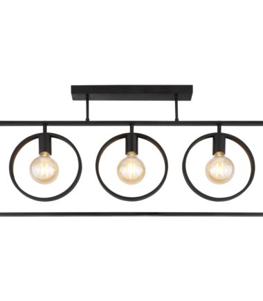 Ova plafonska lampa iz serije MARKUS upotpunjuje vaš enterijer elegantnim izvorom svetlosti. Napravljena od crnog mat metala, plafonska lampa dužine 92 cm sastoji se od metalnog rama u kojem su fiksirana tri E27 grla okružena prstenovima. Mogu biti opremljena odgovarajućim sijalicama po vašem izboru, što vam omogućava da pojedinačno odredite laganu boju i jačinu. Sa ostalim modelima iste serije možete upotpuniti celokupnu sliku u svoja četiri zida.